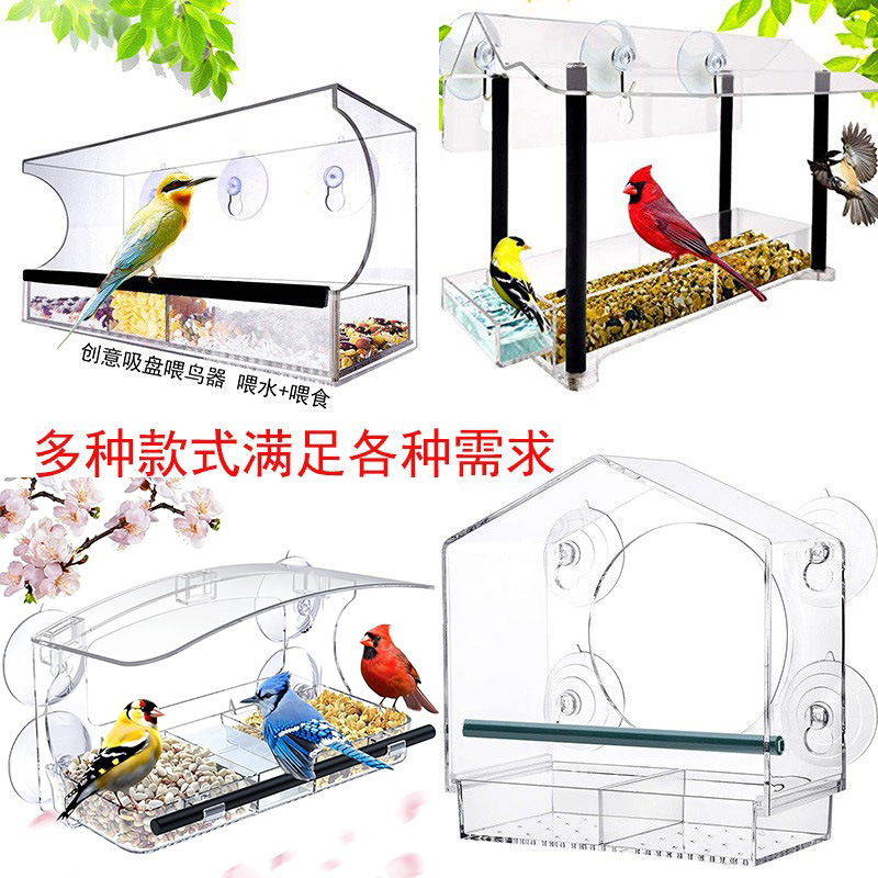クロスボーダーアクリル鳥かご透明小型ペット鳥壁掛けフィーダー屋外吸着プラスチック鳥の餌箱