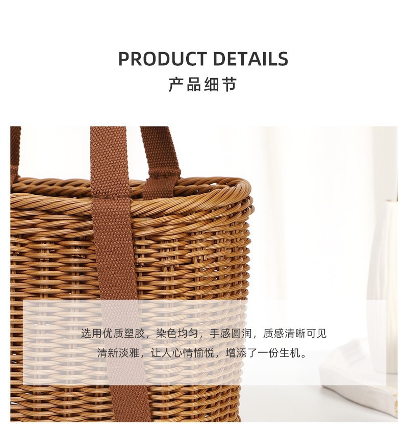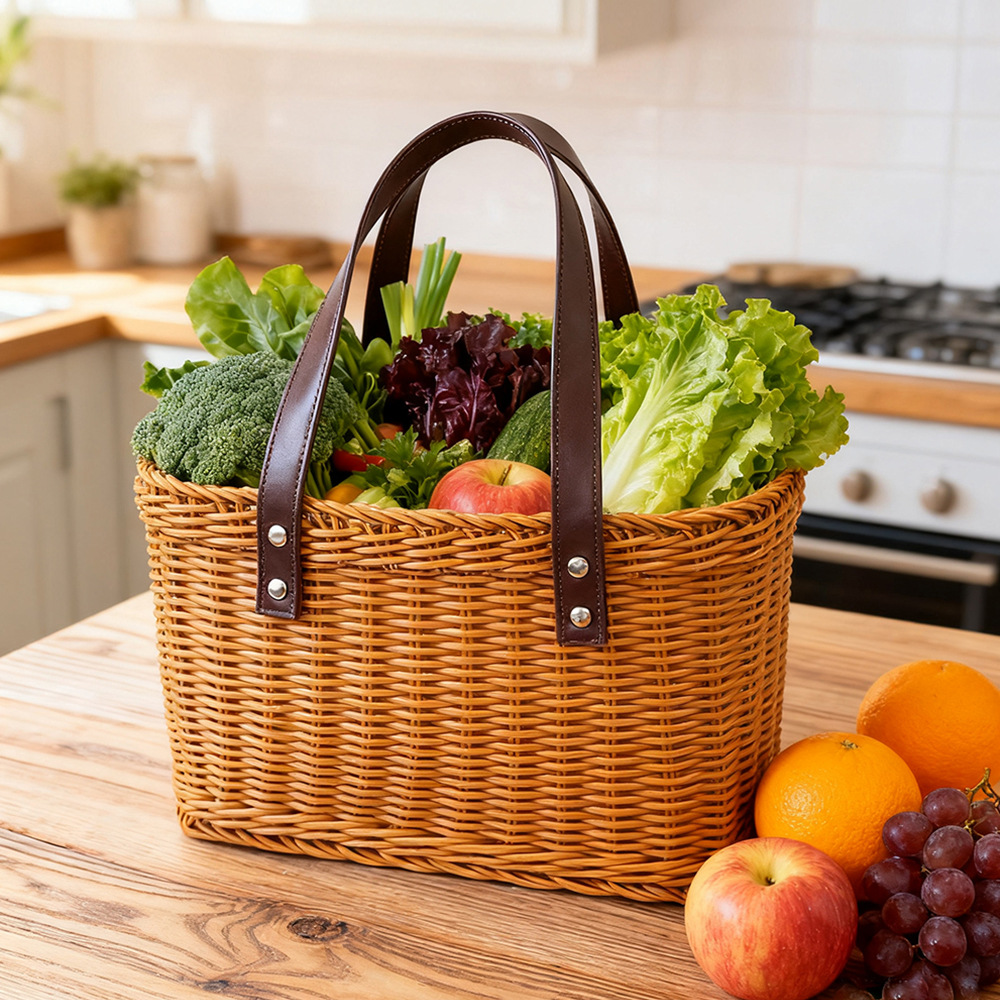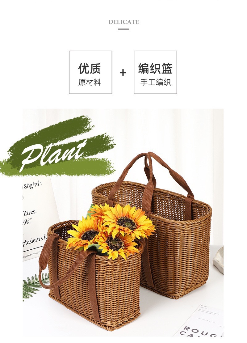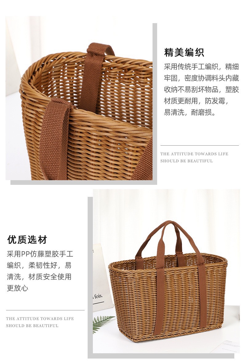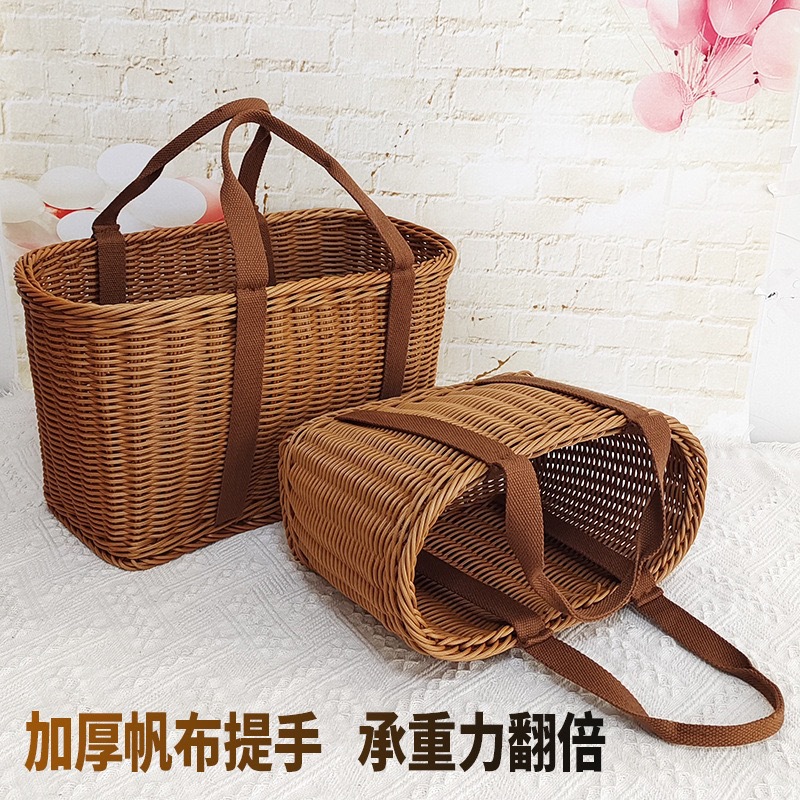 籐模造ハンドル付き収納バスケット、強化ピクニックバスケット、買い物バスケット、籐製フラワーバスケット、ピッキングバスケット、リビングルーム用スナックバスケット