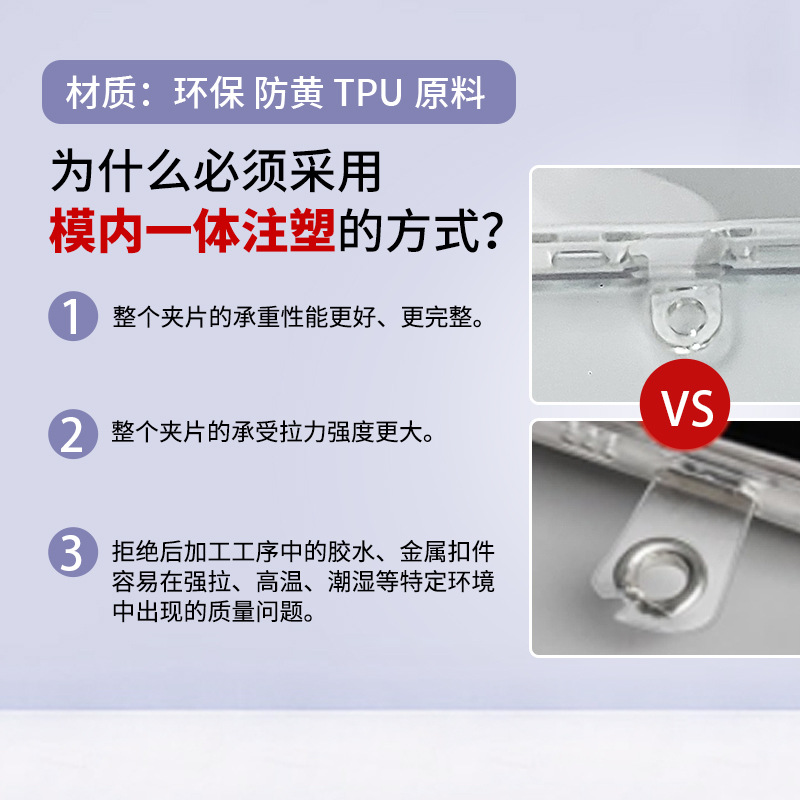 随每个产品配送模内注塑环保仿黄变TPU夹片1个。