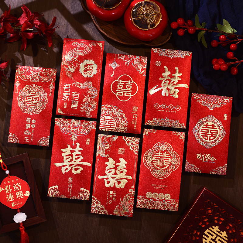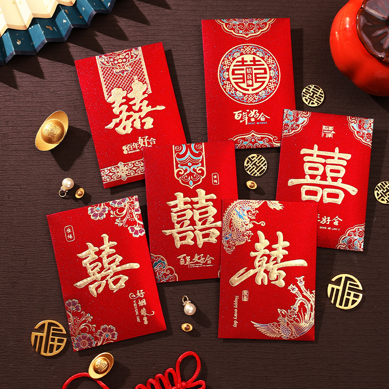 成名抖音专用一件批发结婚红包婚礼喜字利是封磨砂回礼百元包厂家