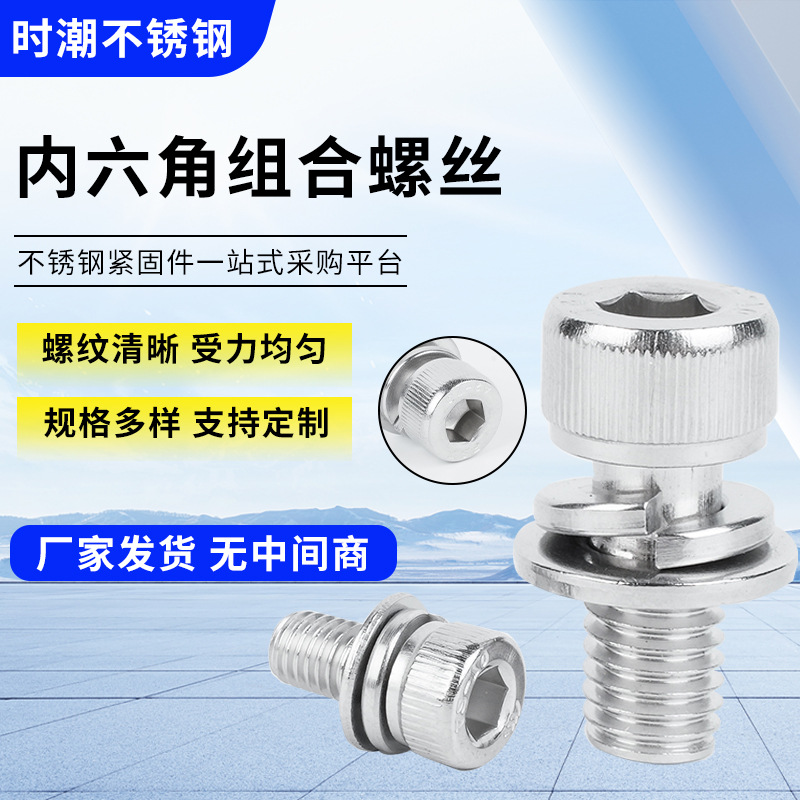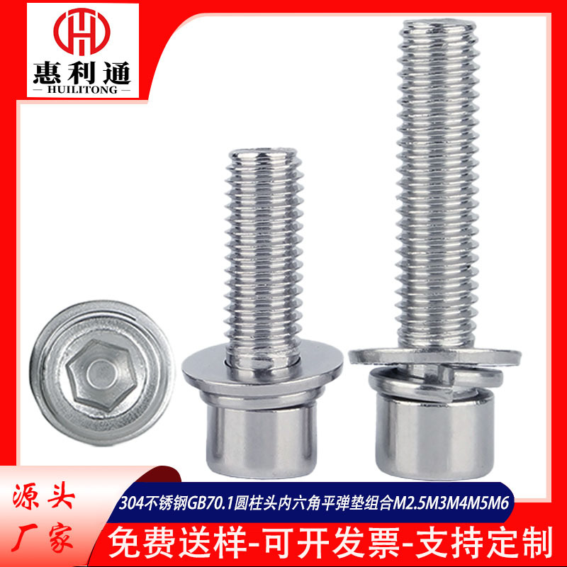 304不锈钢圆柱头内六角平弹垫组合螺丝GB70.1杯头内六角三组合钉