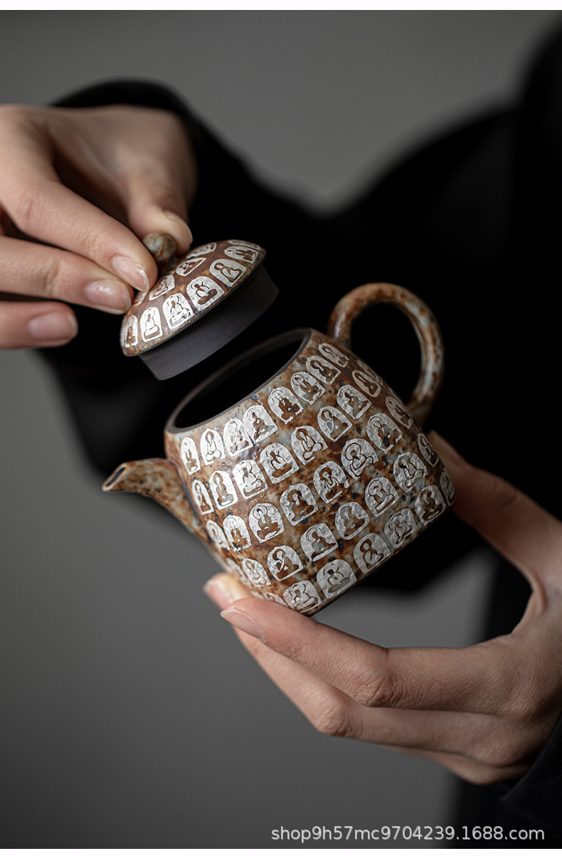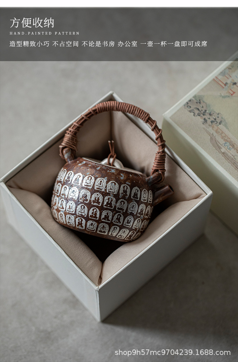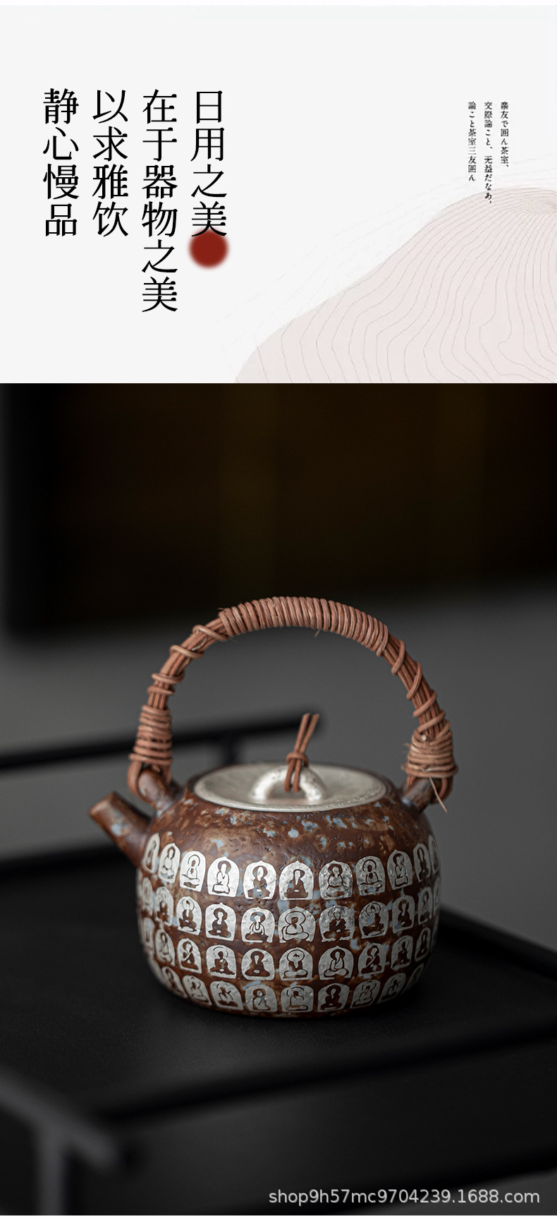 禧マグネシウム新中国式レトロ禅意万仏銀ティーポット陶磁器家庭用提梁壺宝瓶泡ティーポット工夫