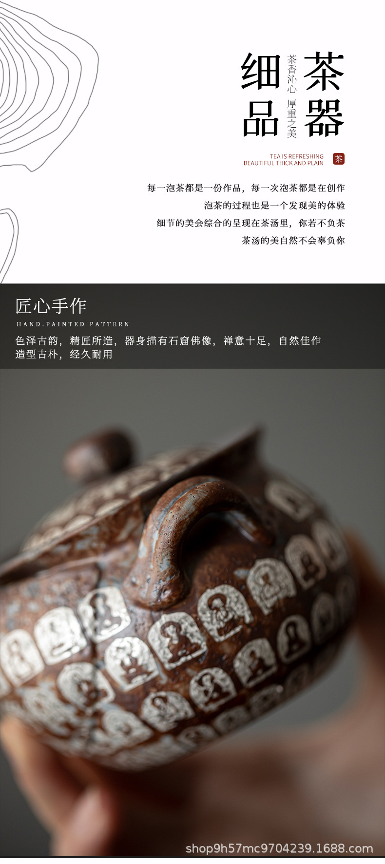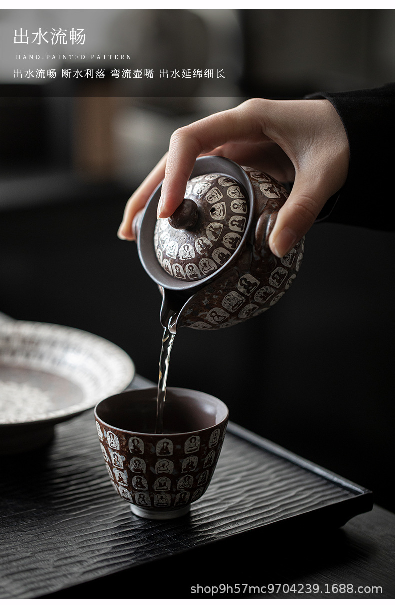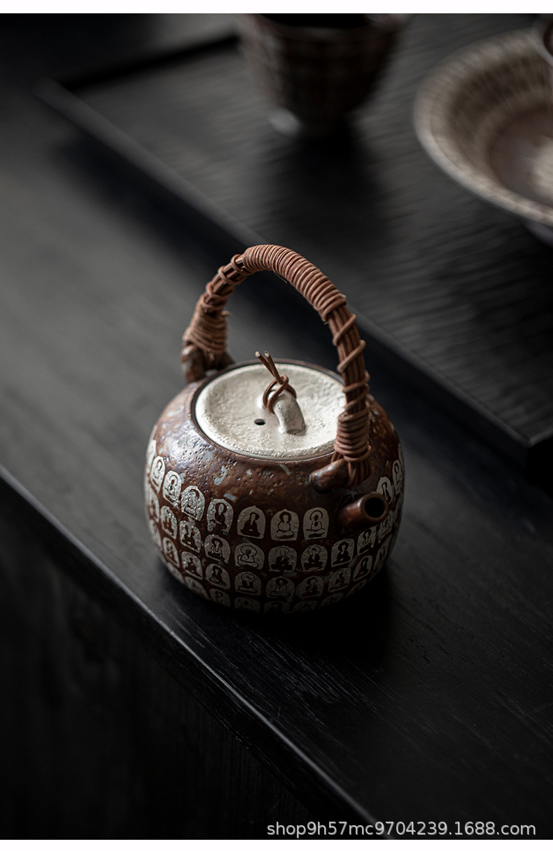 禧マグネシウム新中国式レトロ禅意万仏銀ティーポット陶磁器家庭用提梁壺宝瓶泡ティーポット工夫