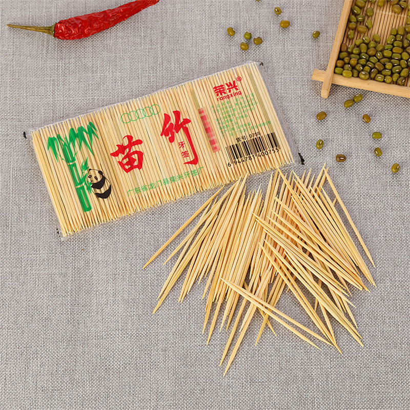 家庭用の細い竹のつまようじの双頭袋の細いつまようじのホテルのレストランの頭の層のつまようじの贈り物はスーパーの商品の供給を代行します。