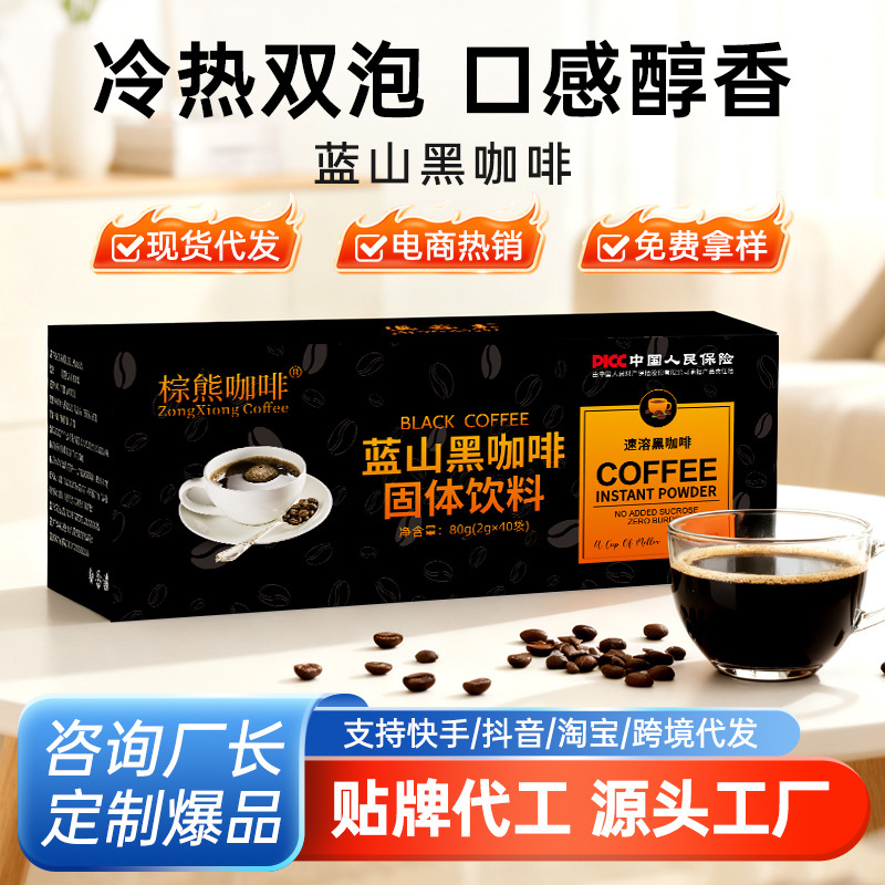 FDA認証済み白インゲン豆ブラックコーヒー、ブルーマウンテン風味インスタントアメリカンコーヒー2g40包、卸売・配送