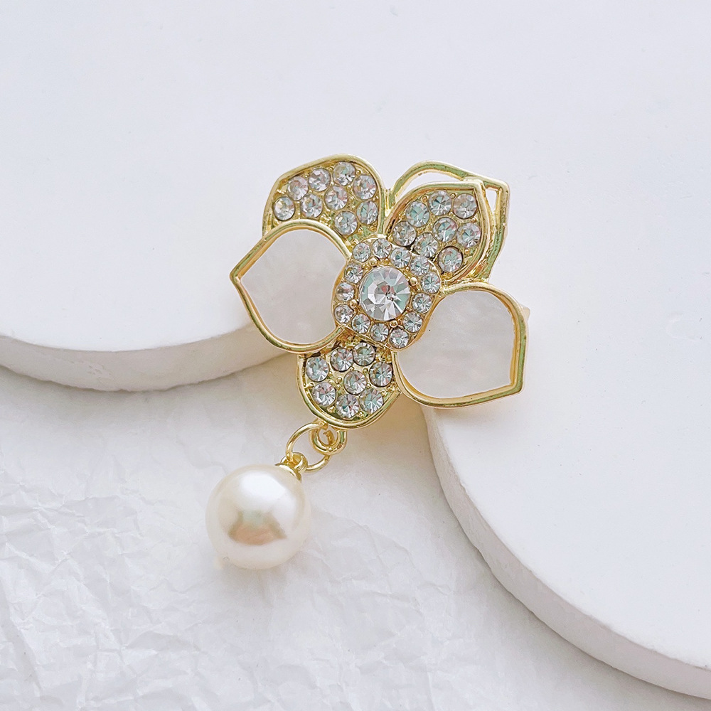 高档珍珠流苏水滴胸针奢华精致西装胸花配饰固定衣服防走光别针女