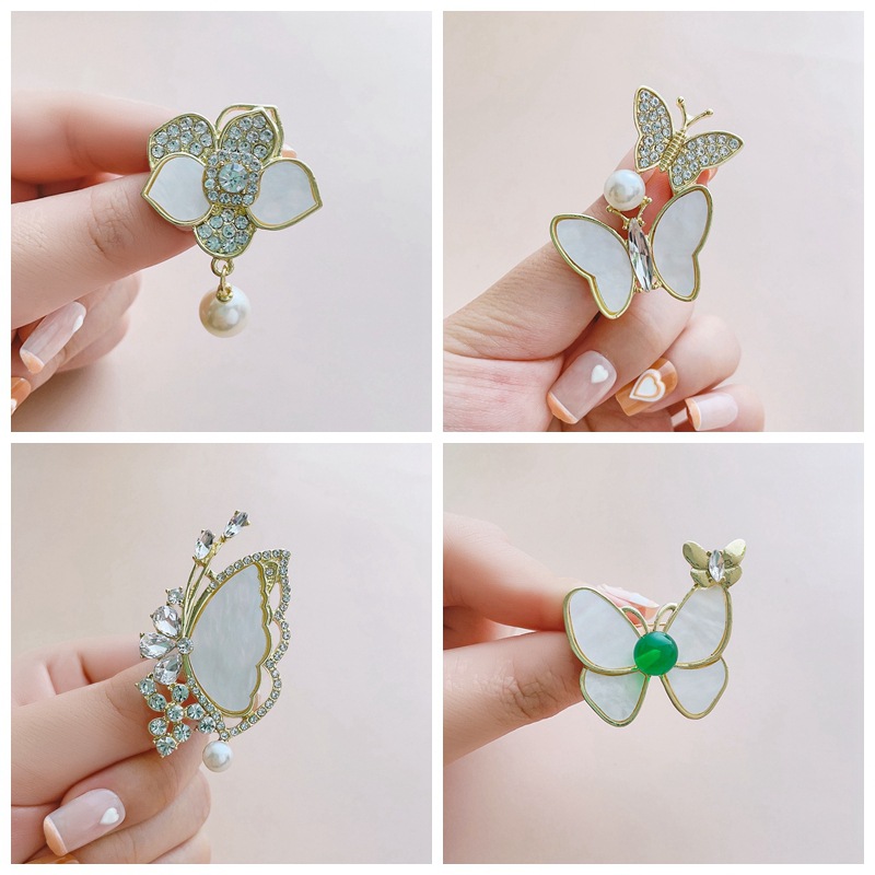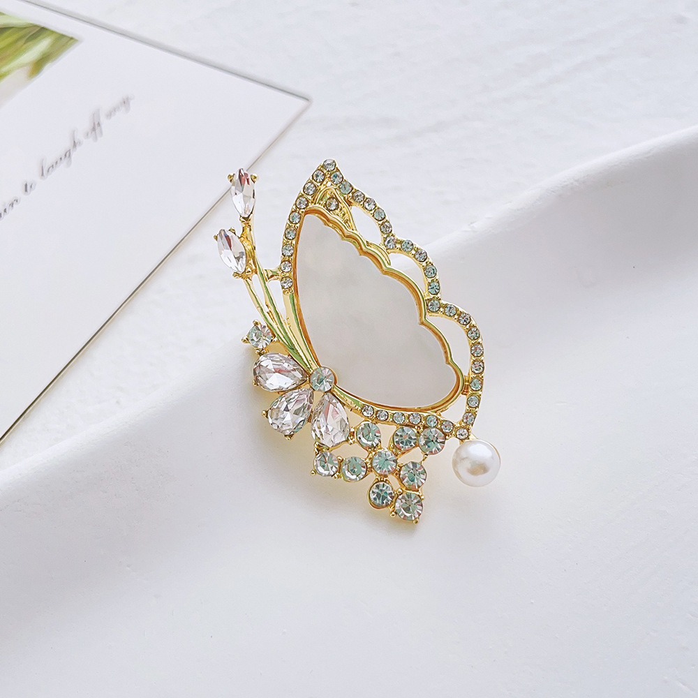 服の高級真珠のブローチの洋服のファッションの服は女性の緑色の胸の花のドリルの個性のシルクのティッシュを飾って蝶のピンを掛けます。