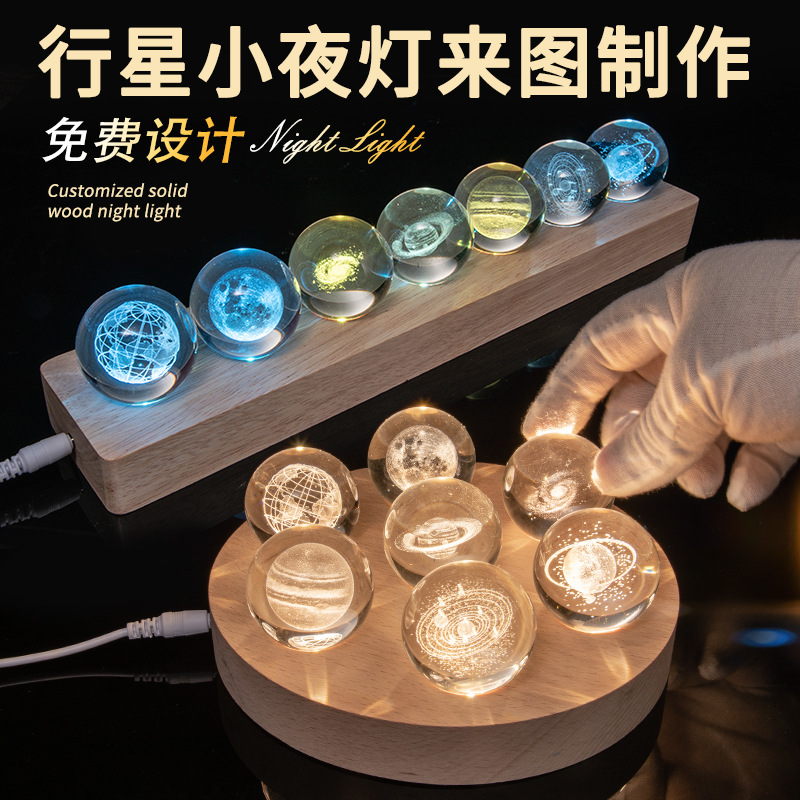 创意七彩行星水晶球发光装饰品水晶桌面摆件节日礼物圣诞小夜灯