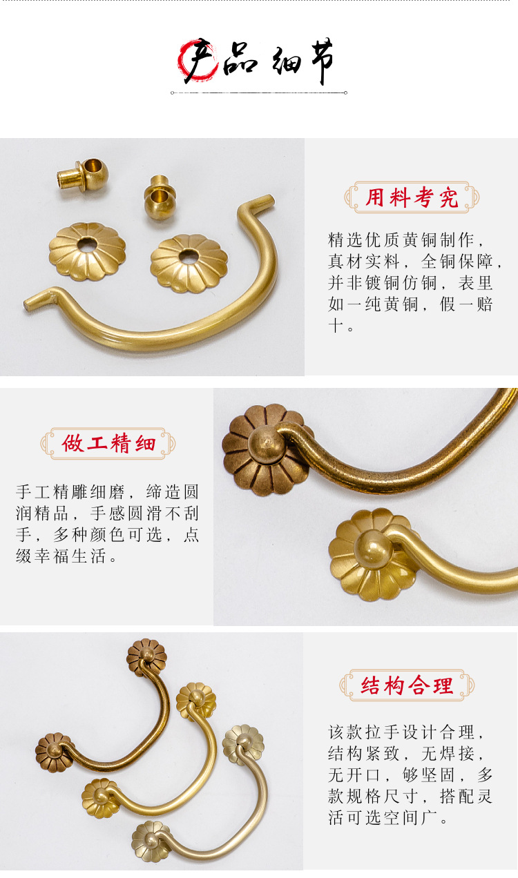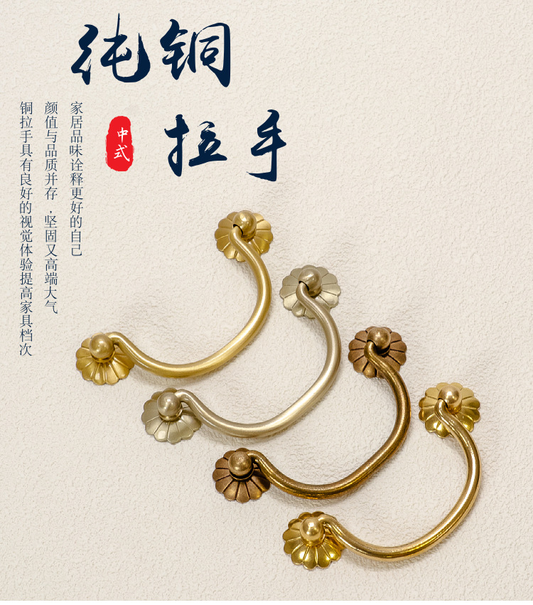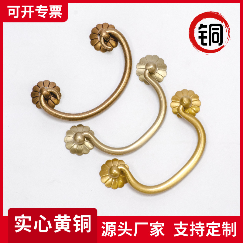 中国式模造古レトロ中実真鍮リング取っ手漢方薬盤鍋物銅取っ手純銅金色プルリング取っ手