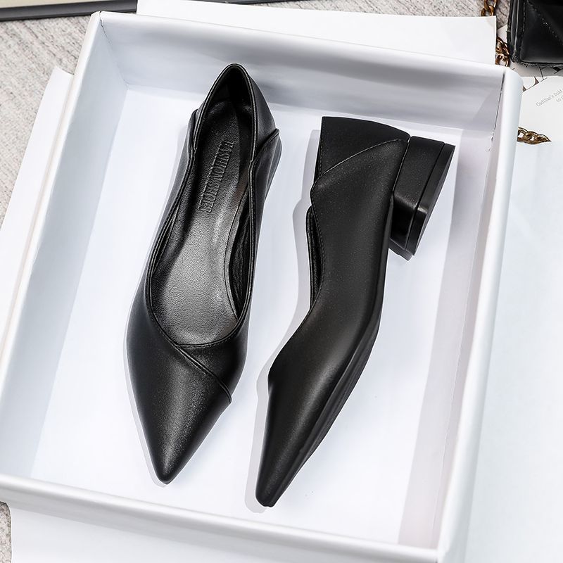 黒の柔らかい皮のハイヒールの女性の細いかかとのセクシーな先の2023年の春秋の新型のフランスの気質の浅い口の仕事の靴