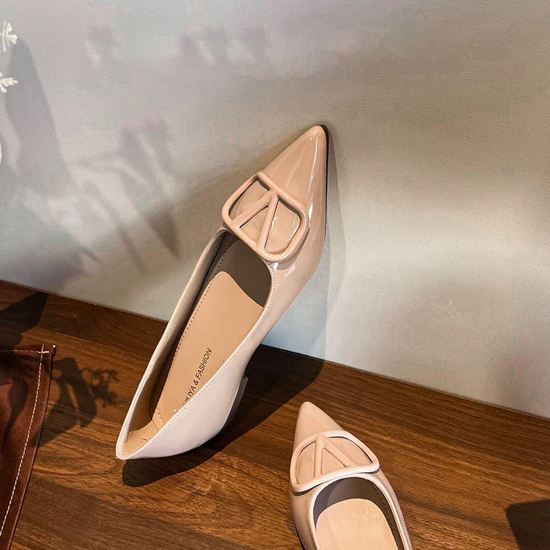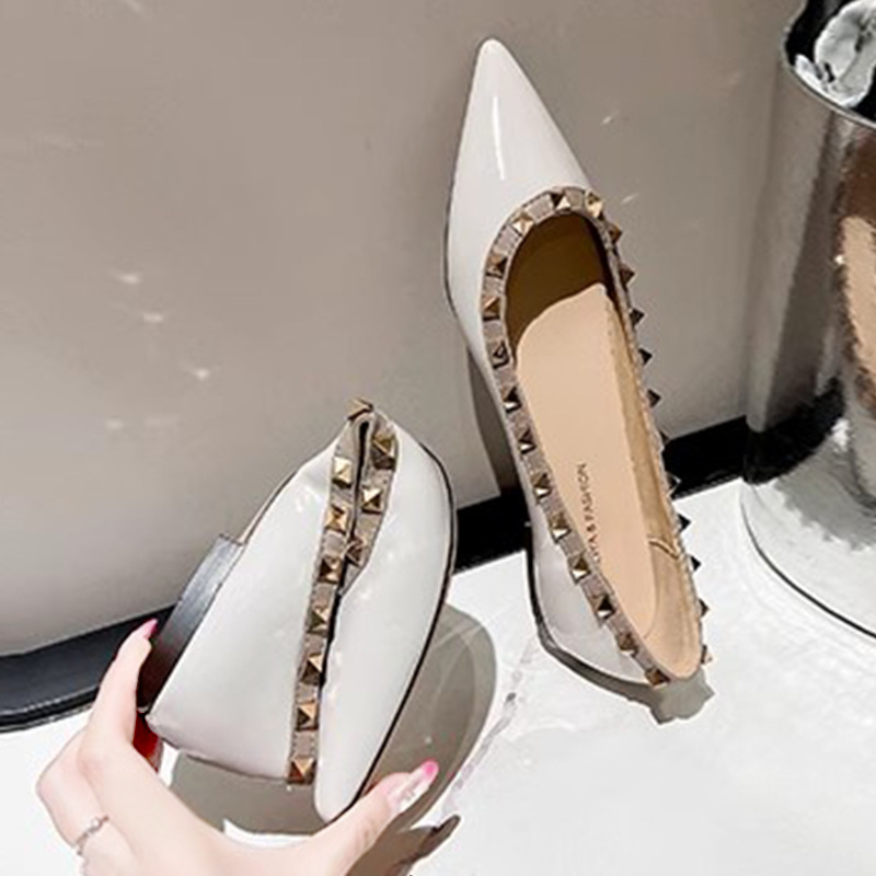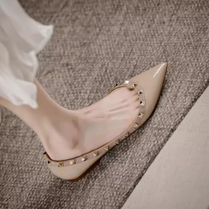 法式气质尖头单鞋女浅口夏季新款铆钉漆皮晚晚风温柔软底平底瓢鞋