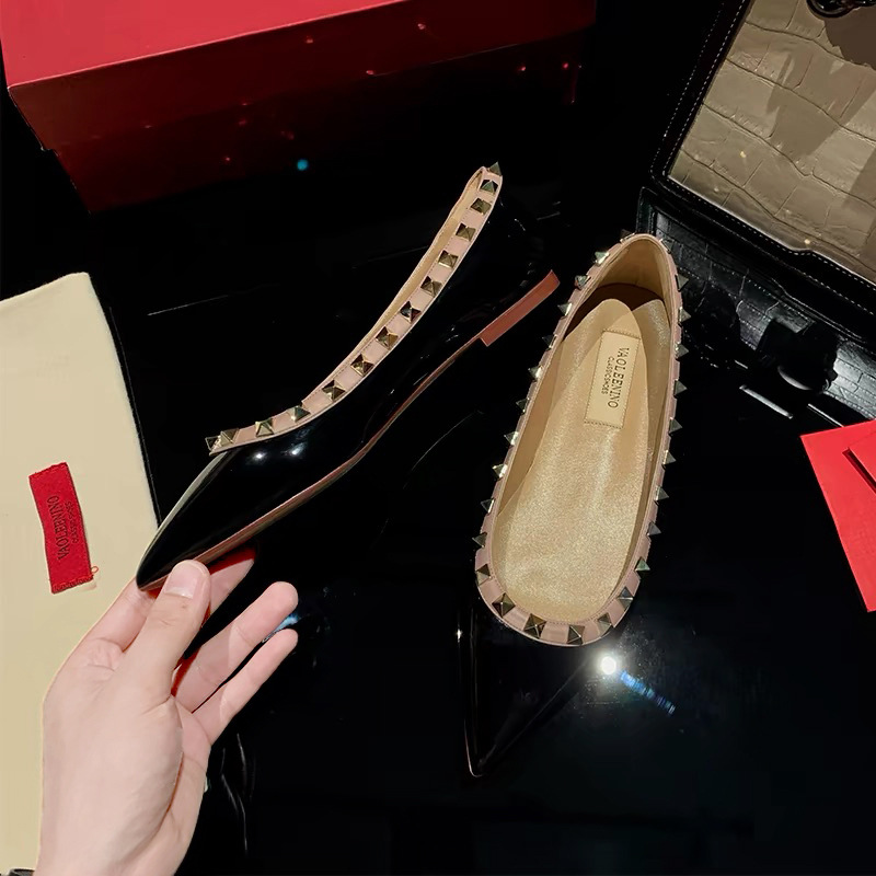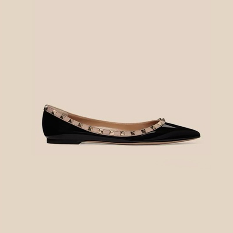 2024春リベット靴の先の平底靴の女性バレエ靴の漆皮ファッション平と船靴の足の靴のパンク
