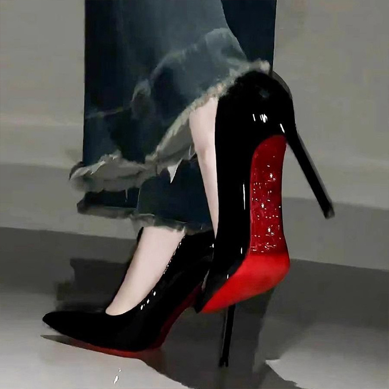 ハイヒールのベッドの上の砲靴の女性の細いかかと2023年の新型の秋の黒色の赤い底の10センチのセクシーな先の靴
