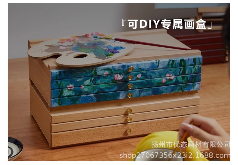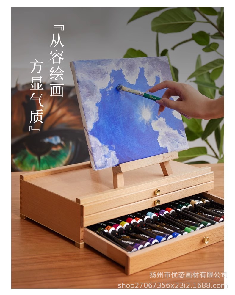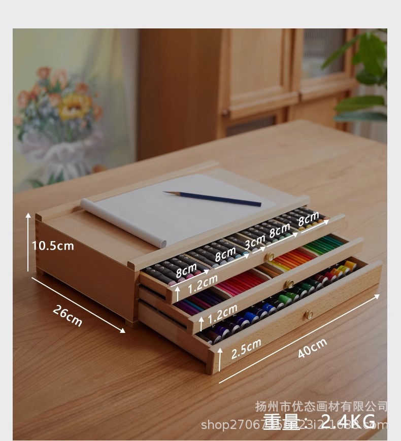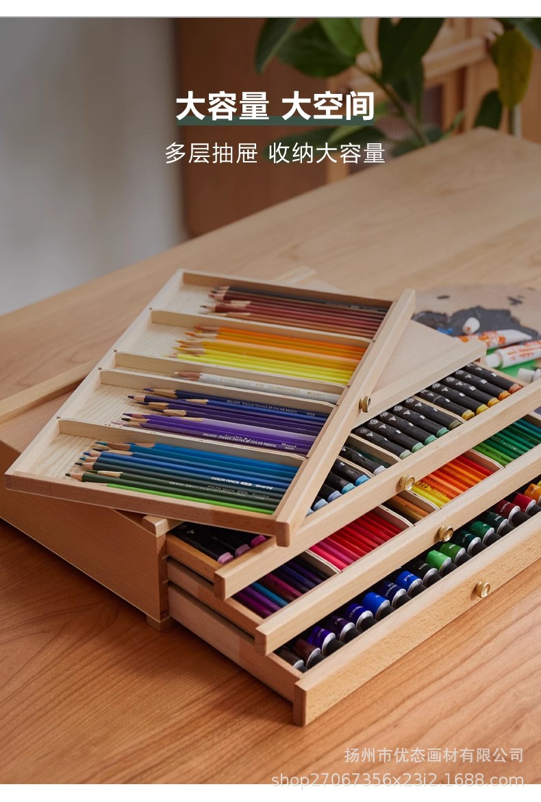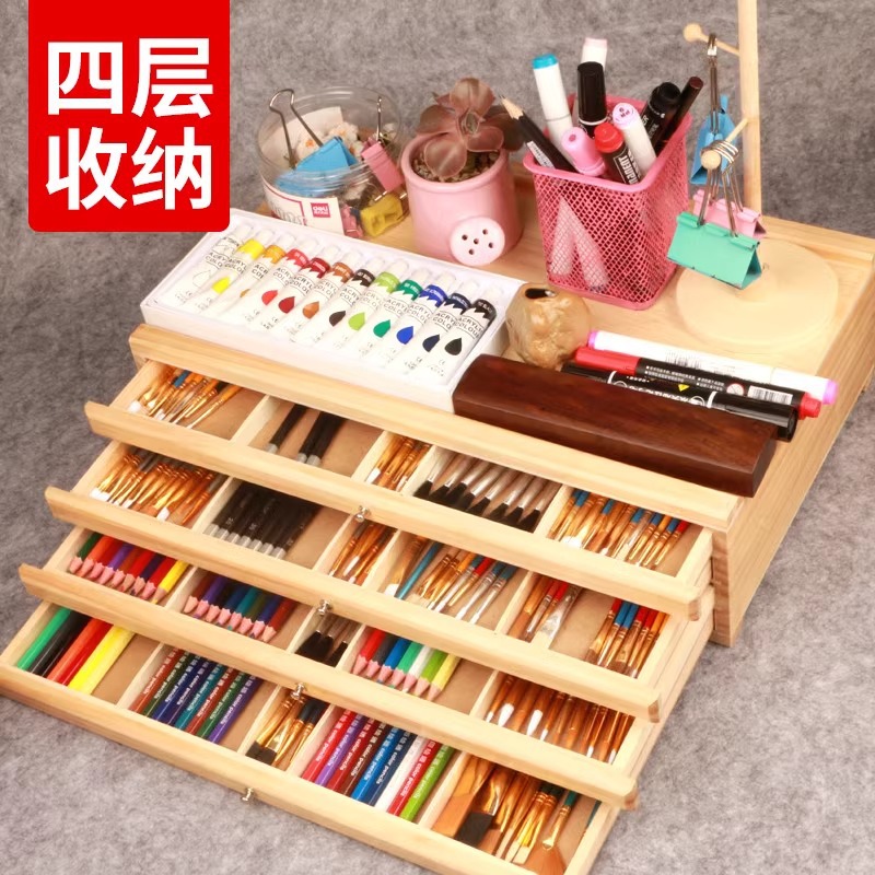 色鉛筆スケッチ水彩水粉顔料デスクトップ画具三階四階引き出し絵画画架ツール収納画箱