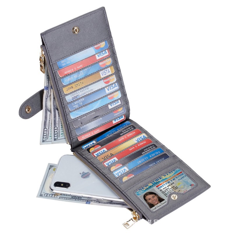 アマゾン本革クロス柄レディースカードバッグ多機能カードクリップシンプルレザーrfid折りたたみ小銭入れ