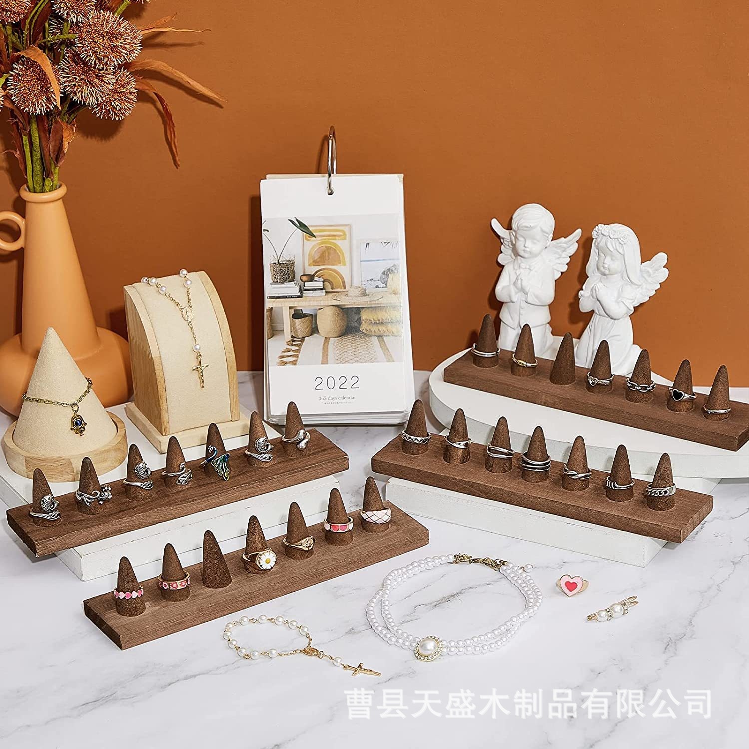 クロスボーダー木製ジュエリーディスプレイスタンドジュエリーリングディスプレイカウンター無垢材リングディスプレイスタンドブナラックダイヤモンドリングラック