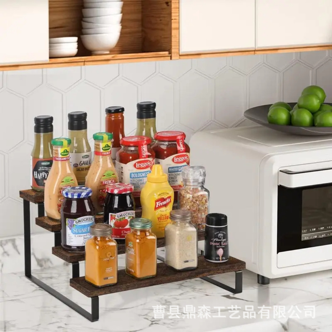 跨境爆款木制展示架三层厨房柜台架香料架收纳架分层台面展示架