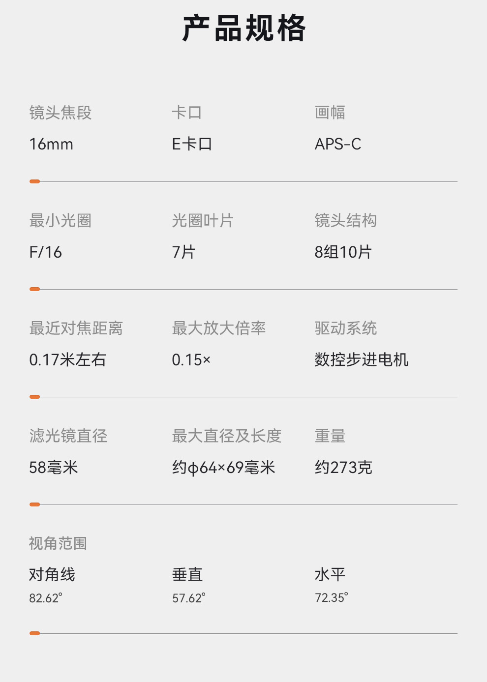 仕様 ソニーeポート (c画幅)16mm f1.8 s