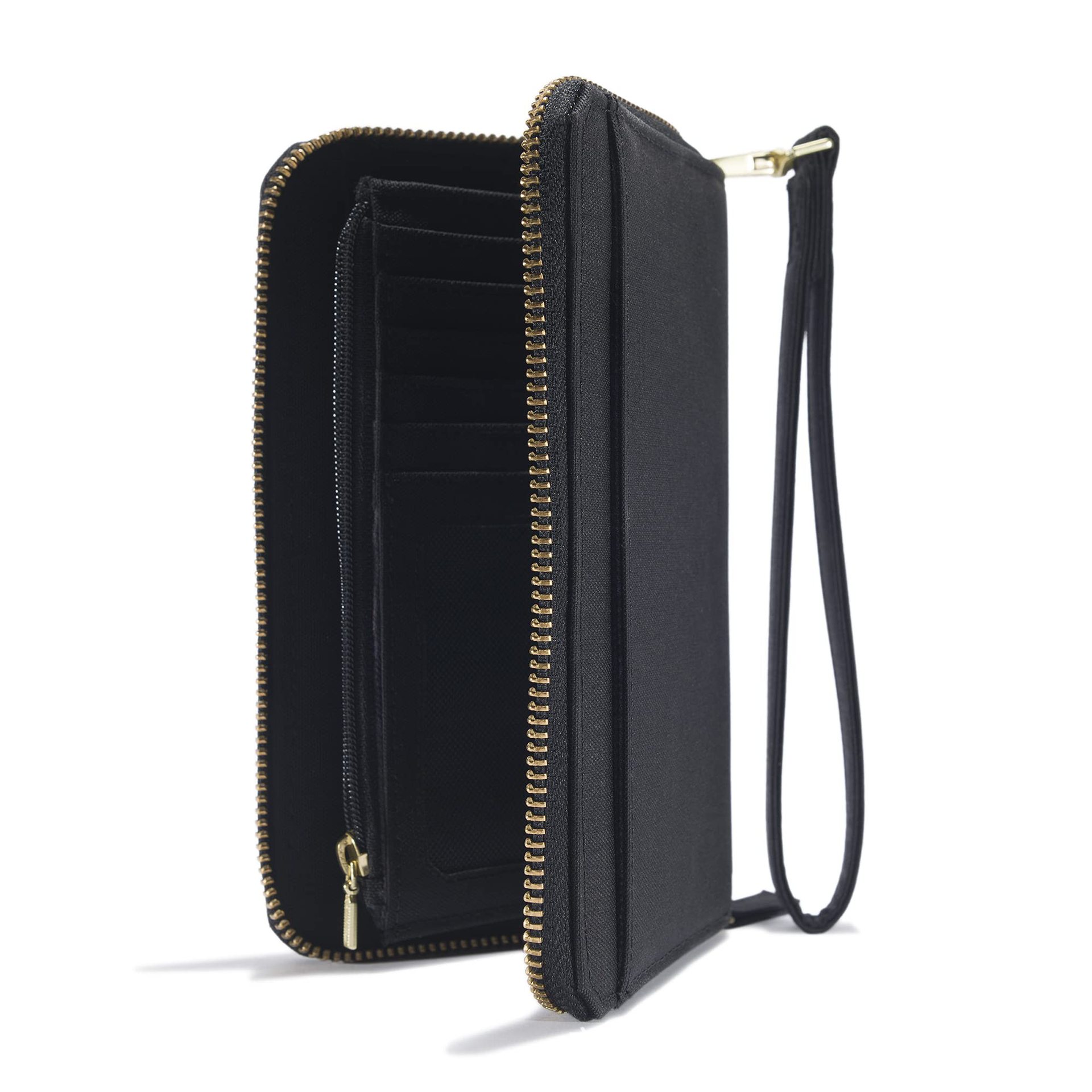 クロスボーダー本革レディースダブルジッパー多カードスロットカードホルダー おしゃれなレザーカードケース タワー型バックル付きRFID磁気防止カードホルダー