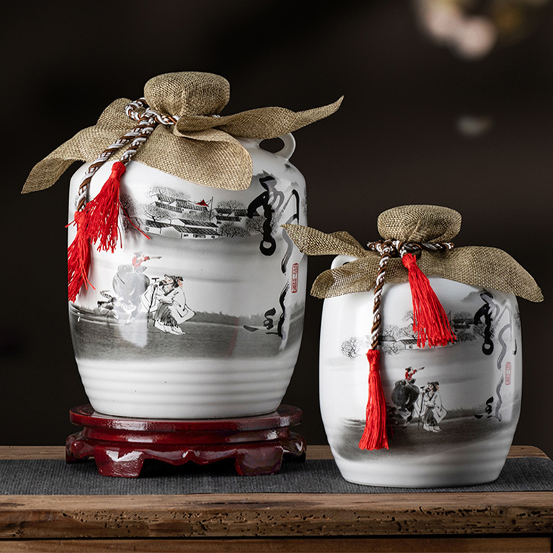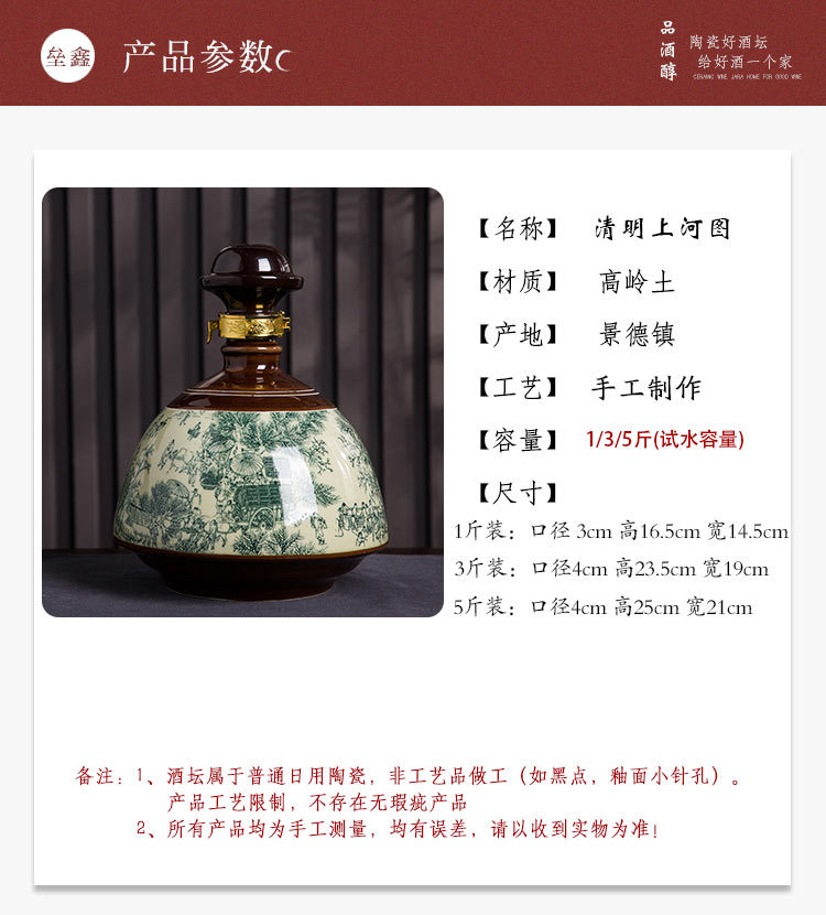 包郵便景徳鎮陶磁器酒瓶1斤3斤5斤入清明上河図密封酒壇家庭用酒瓶酒缶