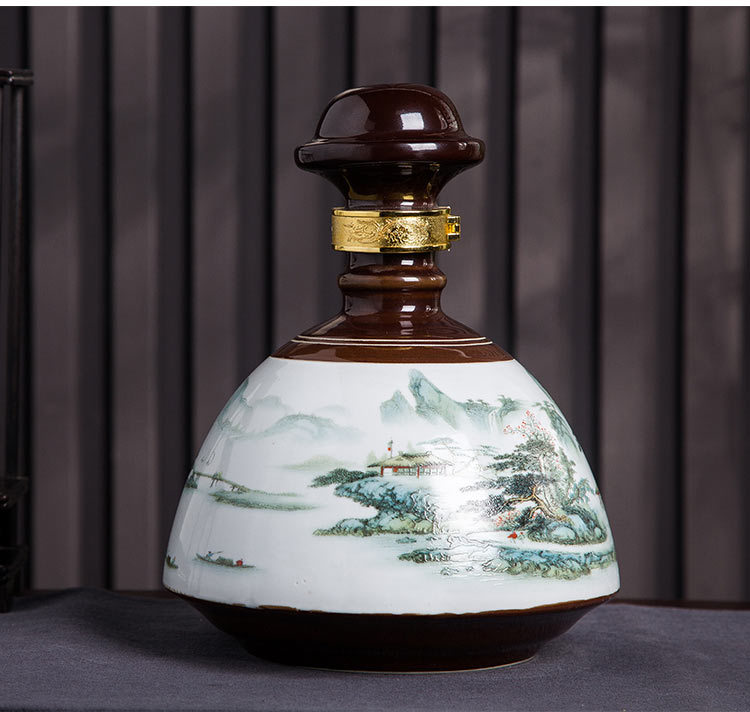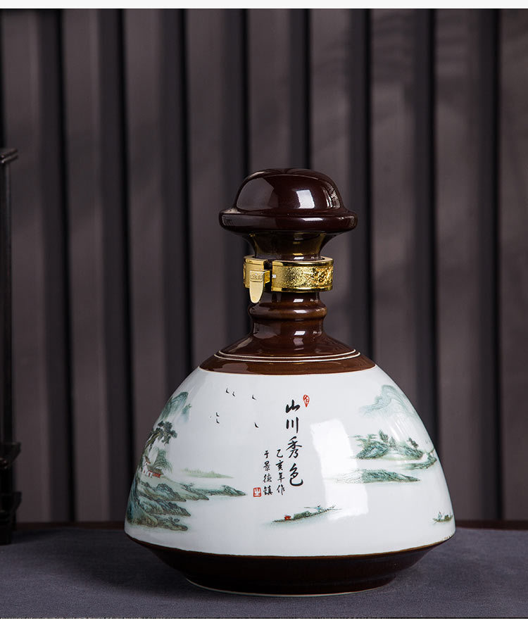 景德镇陶瓷5斤千里江山图空酒瓶子一路高升酒坛小坛子酒瓶白瓷