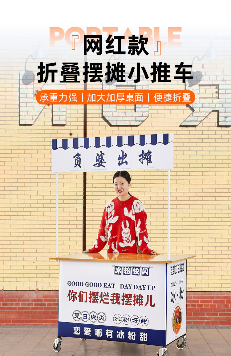 露店ネット赤カートは折り畳み可能な移動テーブルで腸氷粉を焼く商用大学生が販売促進展示台を出すことができる