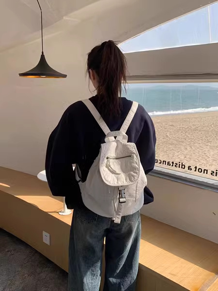 韓国系キャンバスストライプ通勤リュックサック男女紐引きスポーツ大容量旅行リュックサックシンプルで軽いカバン