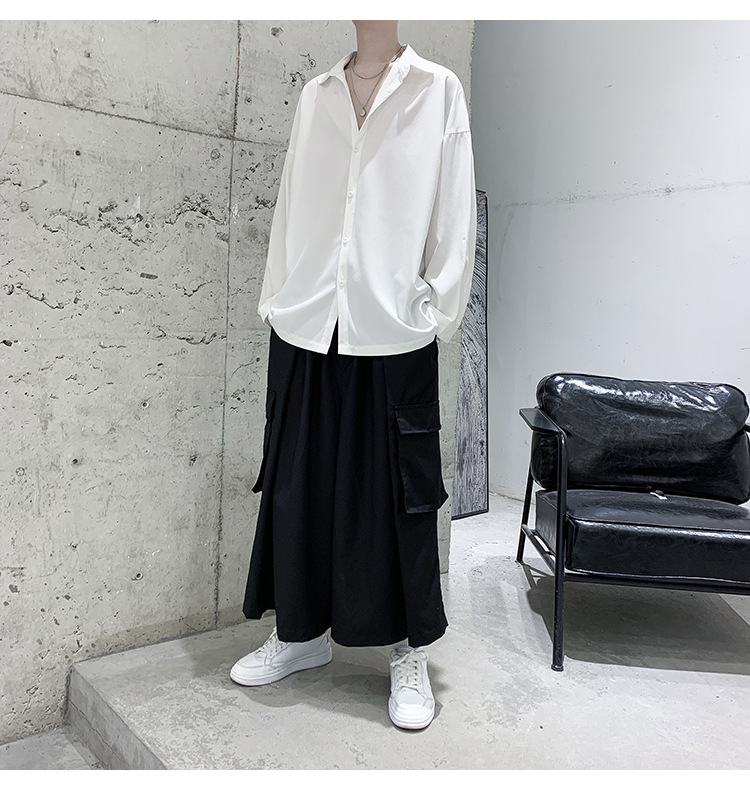 モップパンツ香港風工装ズボン男性カジュアルパンツ春秋潮牌高街ゆるいストレートパンツ男