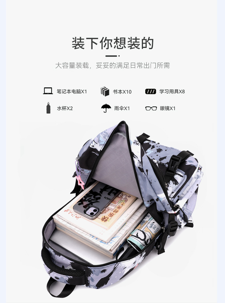 自然魚小学生中学校高校大学防水通気新型大容量ランドセルパソコンバッグ多層収納
