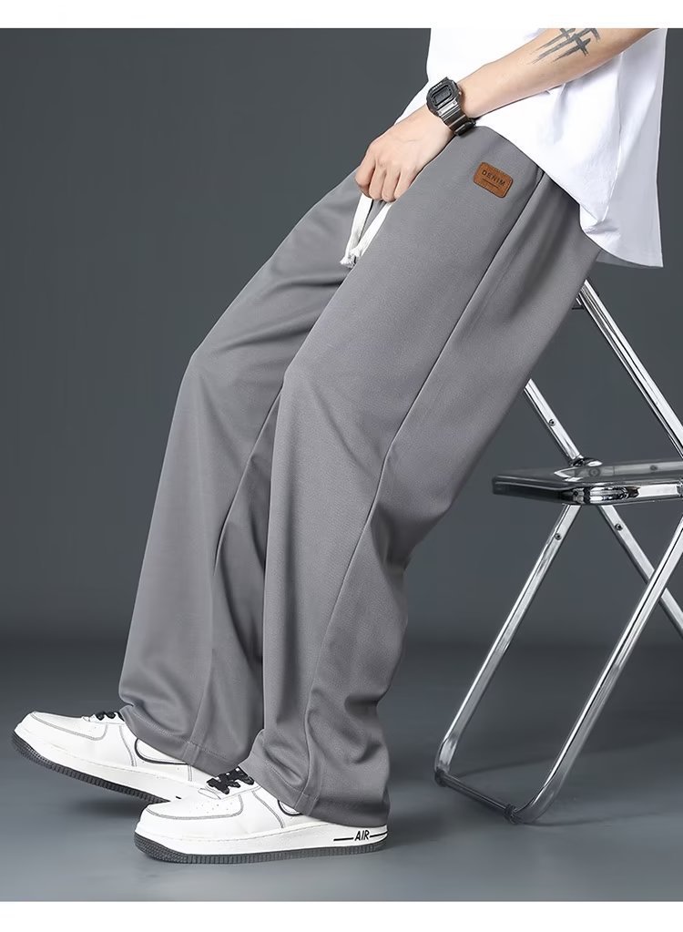 新型カジュアルパンツ男性春秋百合軽熟高街ゆるいストレートパンツ潮牌純色運動長ズボン男
