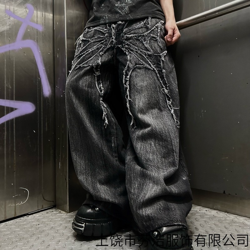 跨境千禧年幽灵牛仔裤高街蜘蛛3d印花嘻哈街头服装哥特复古宽松