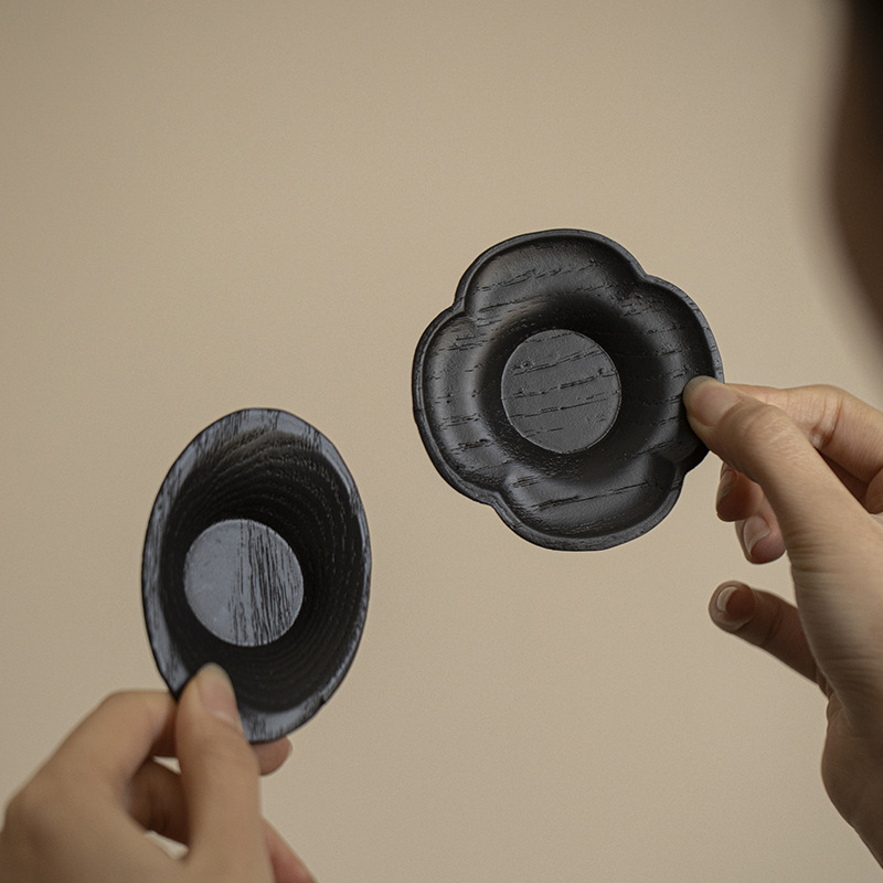白蝋木寂風炭焼黒茶托カップカップ