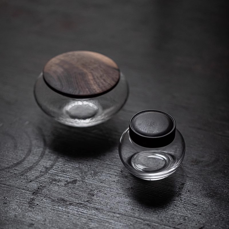 ガラス茶葉缶日本式覚醒茶缶密封貯蔵缶茶葉包装箱胡桃木蓋茶倉