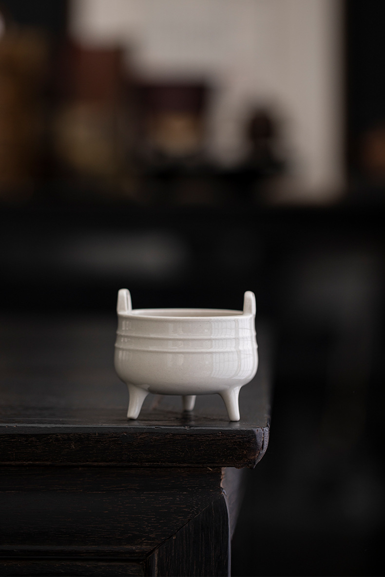 草木灰白官窯置物室内ホノルル線香沈香炉茶室香薫炉中国式陶磁器香炉香道