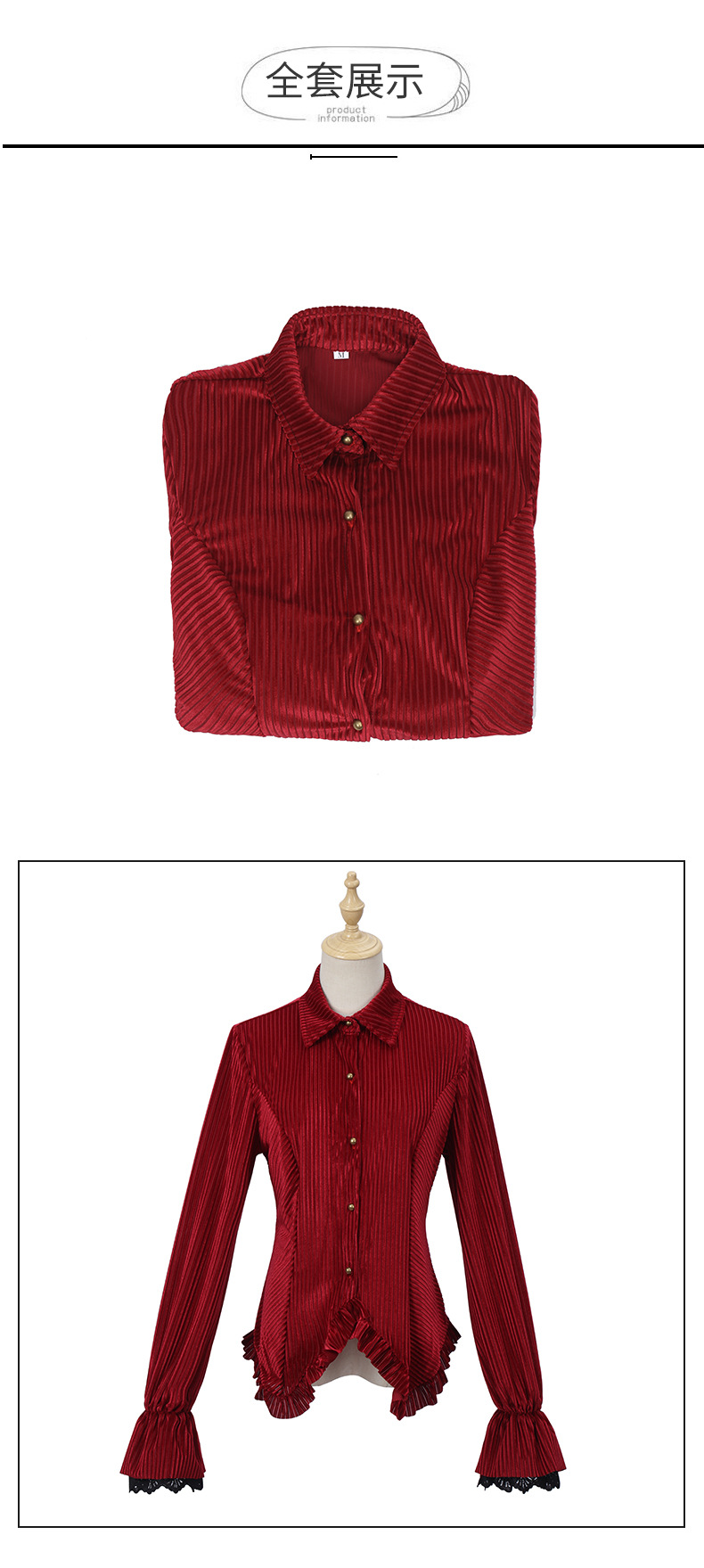 中世ゴシック風ゆるいドレスベルベット生地レトロ長袖シャツ男コスプレ服舞台演技服