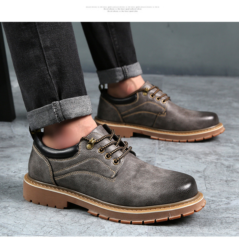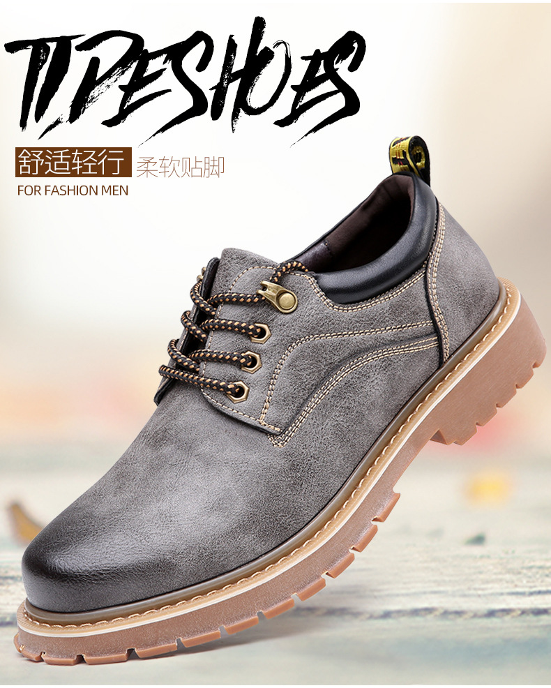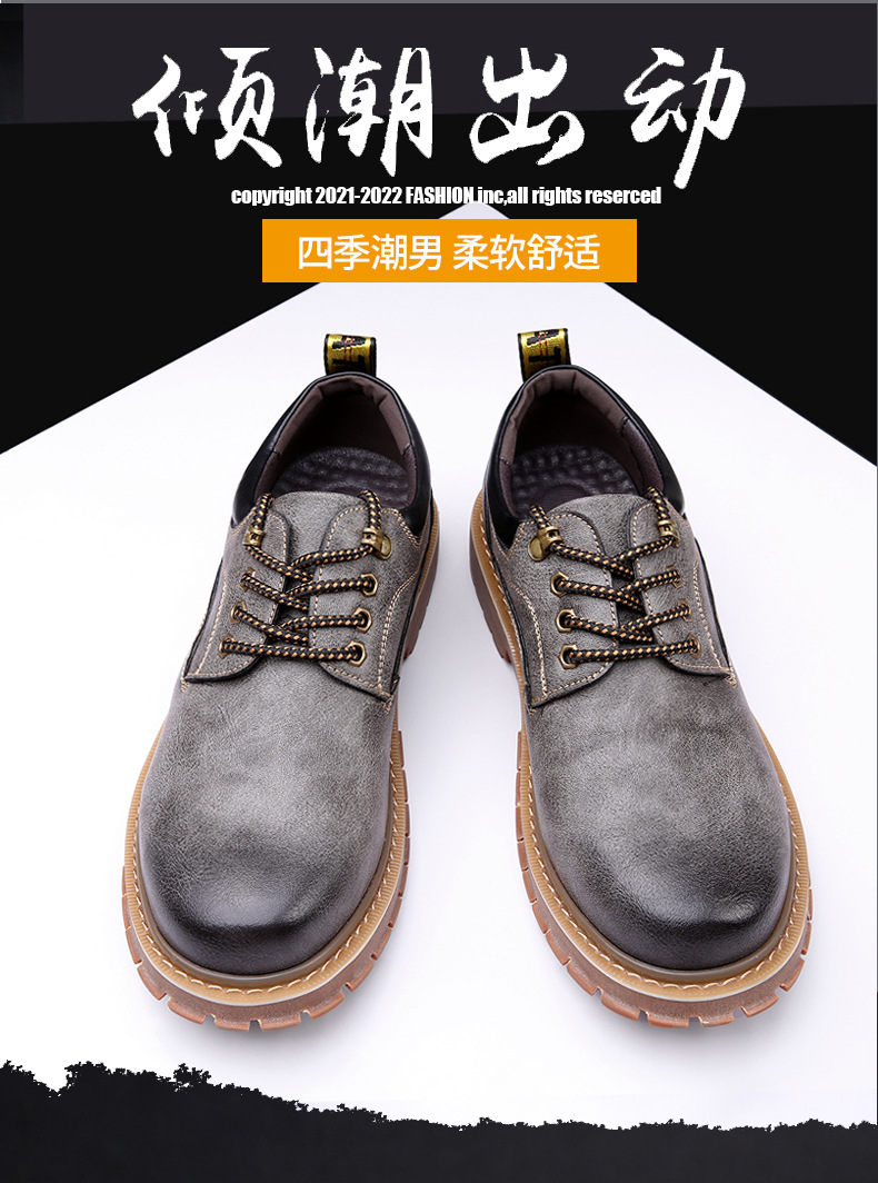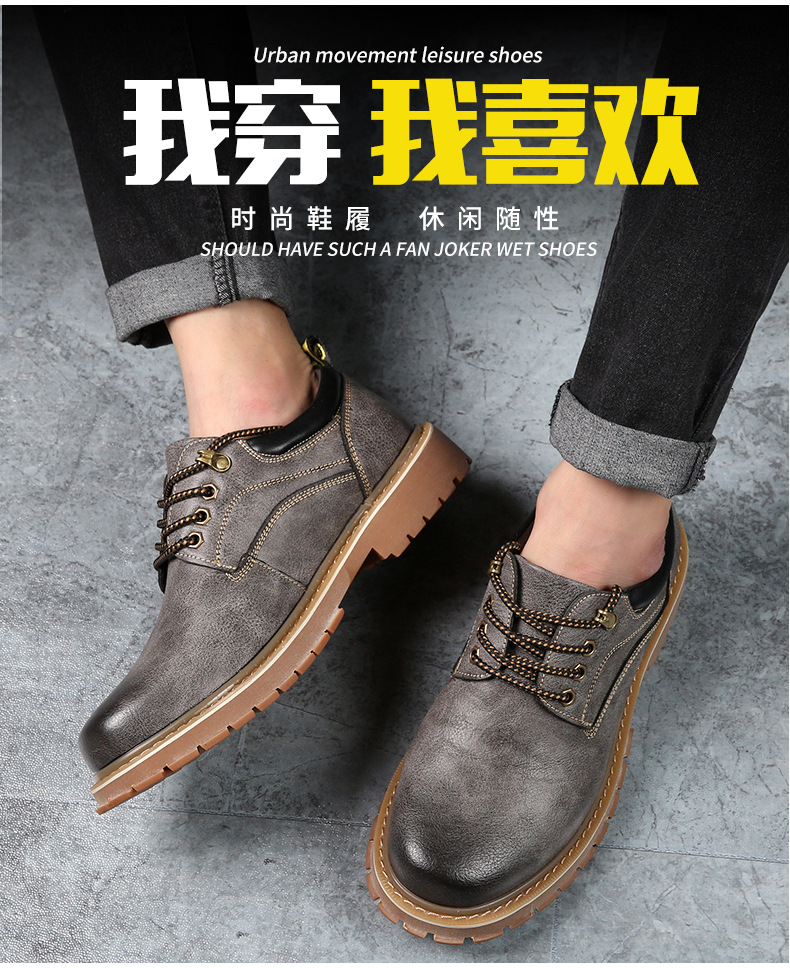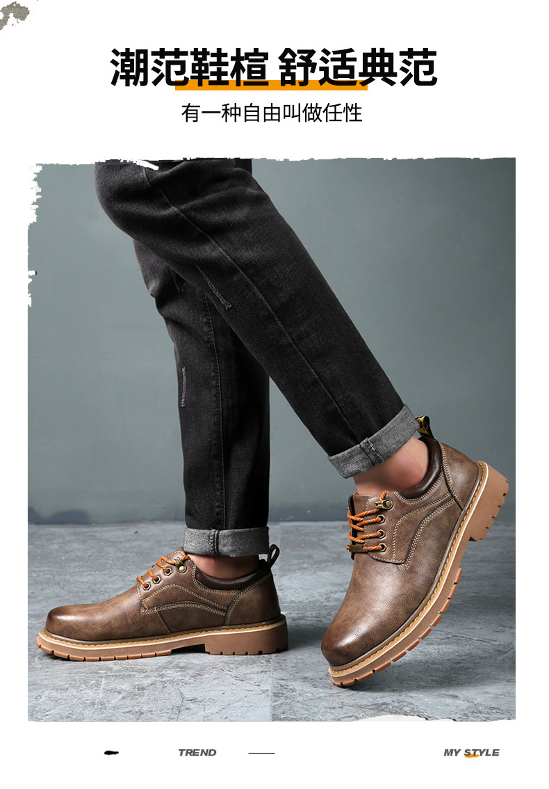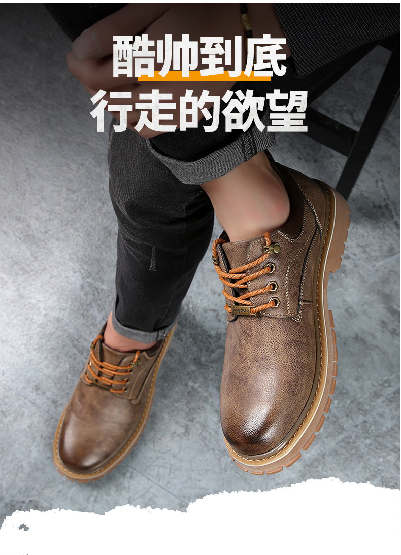 越境秋冬革靴男百合韓版カジュアル靴ファッション英倫工装靴牛筋大頭反絨男靴