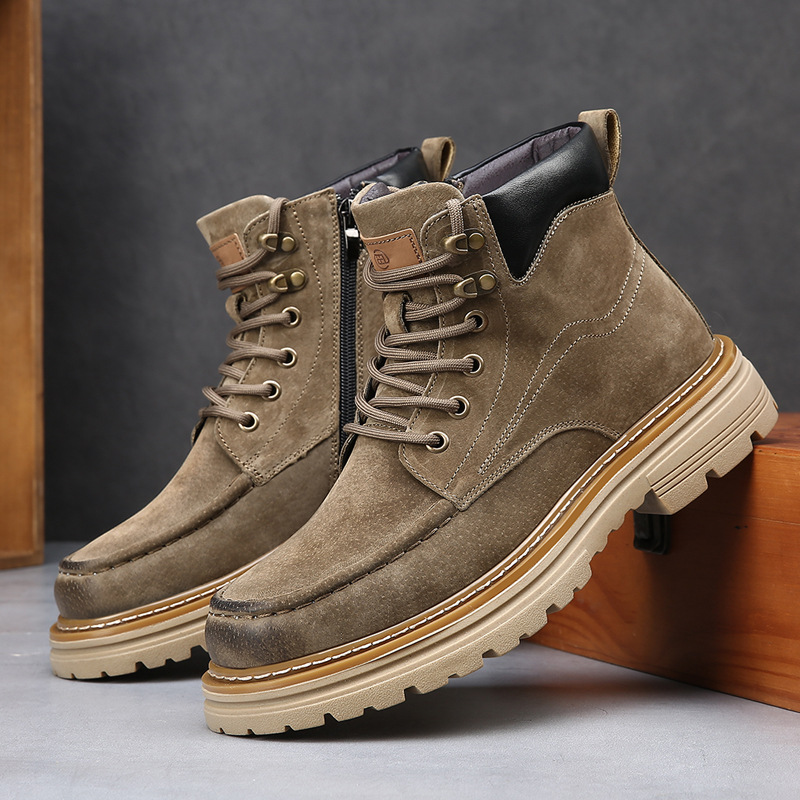 2025 秋冬新マーティンブーツメンズ本革ハイトップトレンディな厚底作業靴レトロ英国ベルベットメンズブーツ