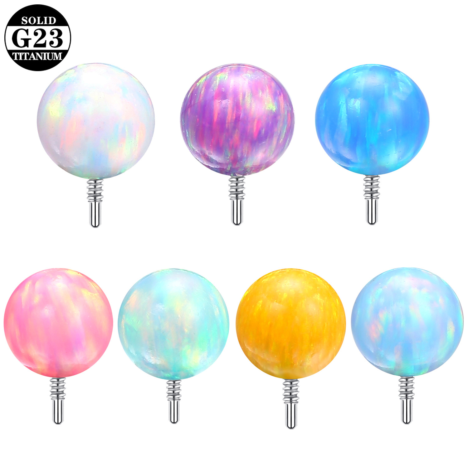 G23 チタン合金オパールスレッドフラットバックイヤリング F136 耳骨ネイルリップネイル鼻ネイルボディピアスジュエリー