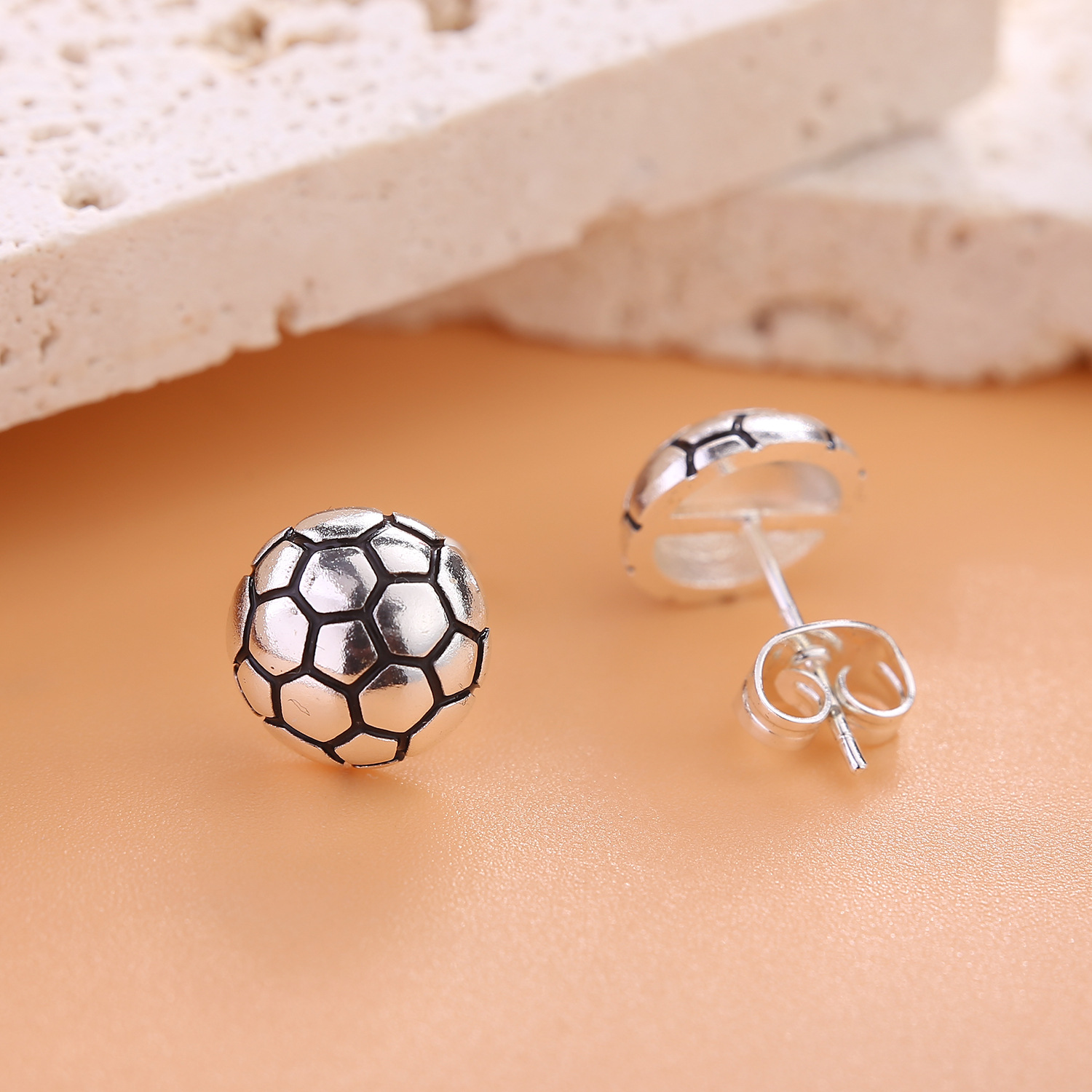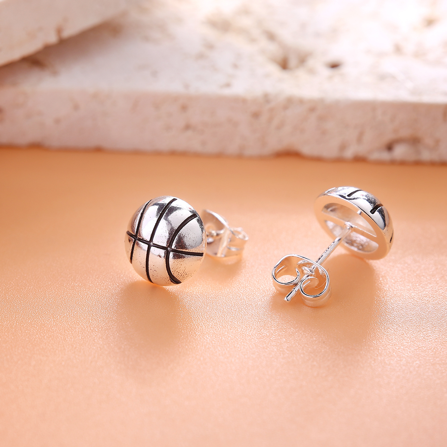 青島越境アクセサリー新型サッカー純銀針ピアスバスケットボールイヤリングバレーボール耳飾り小衆高級感卸売り