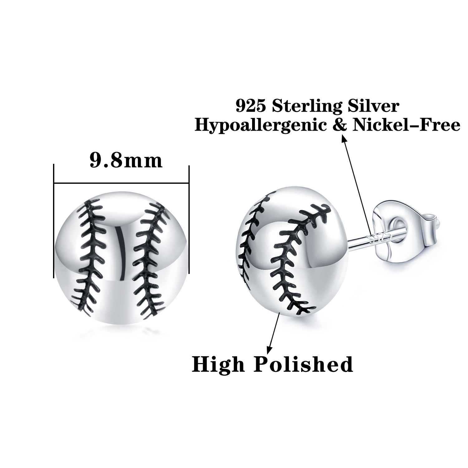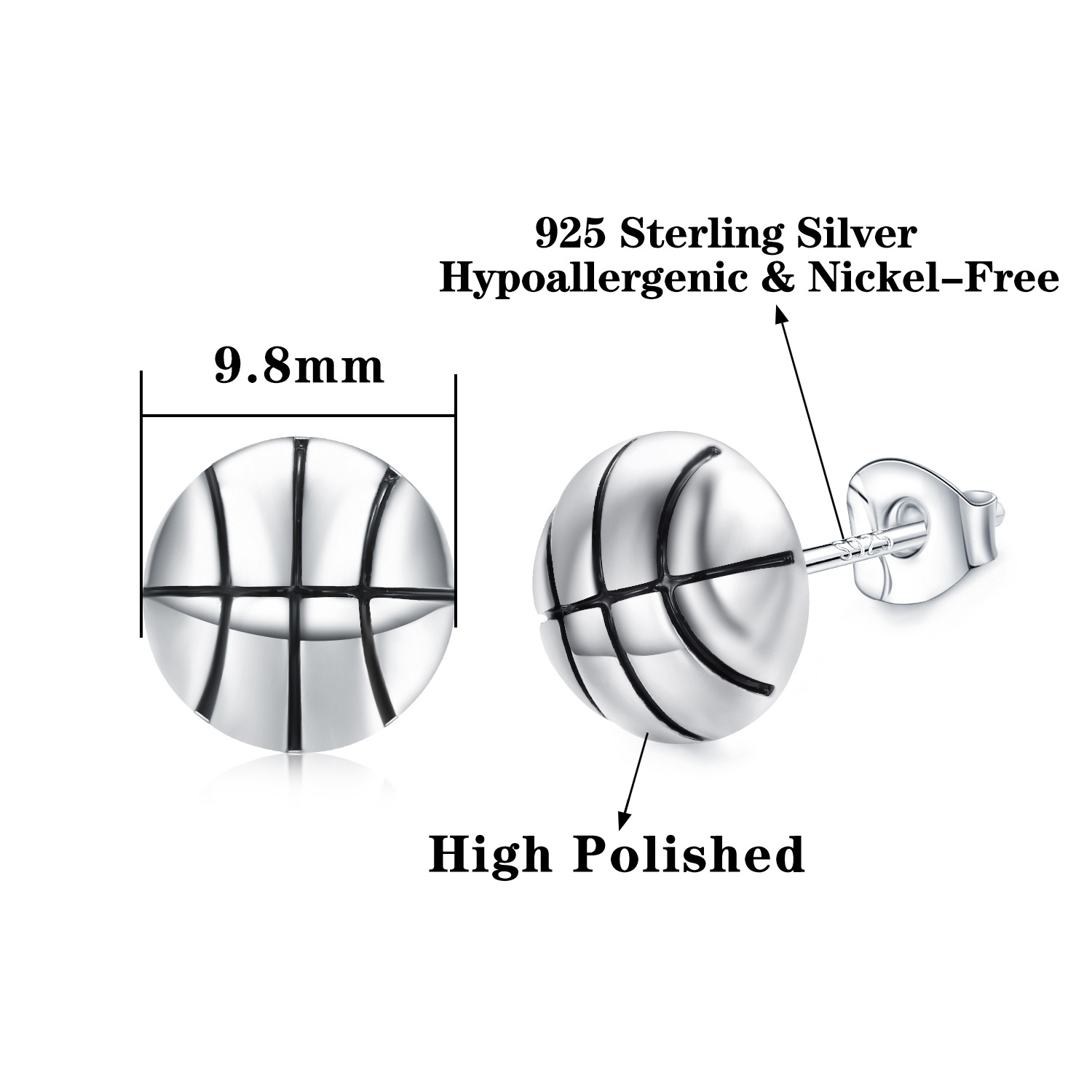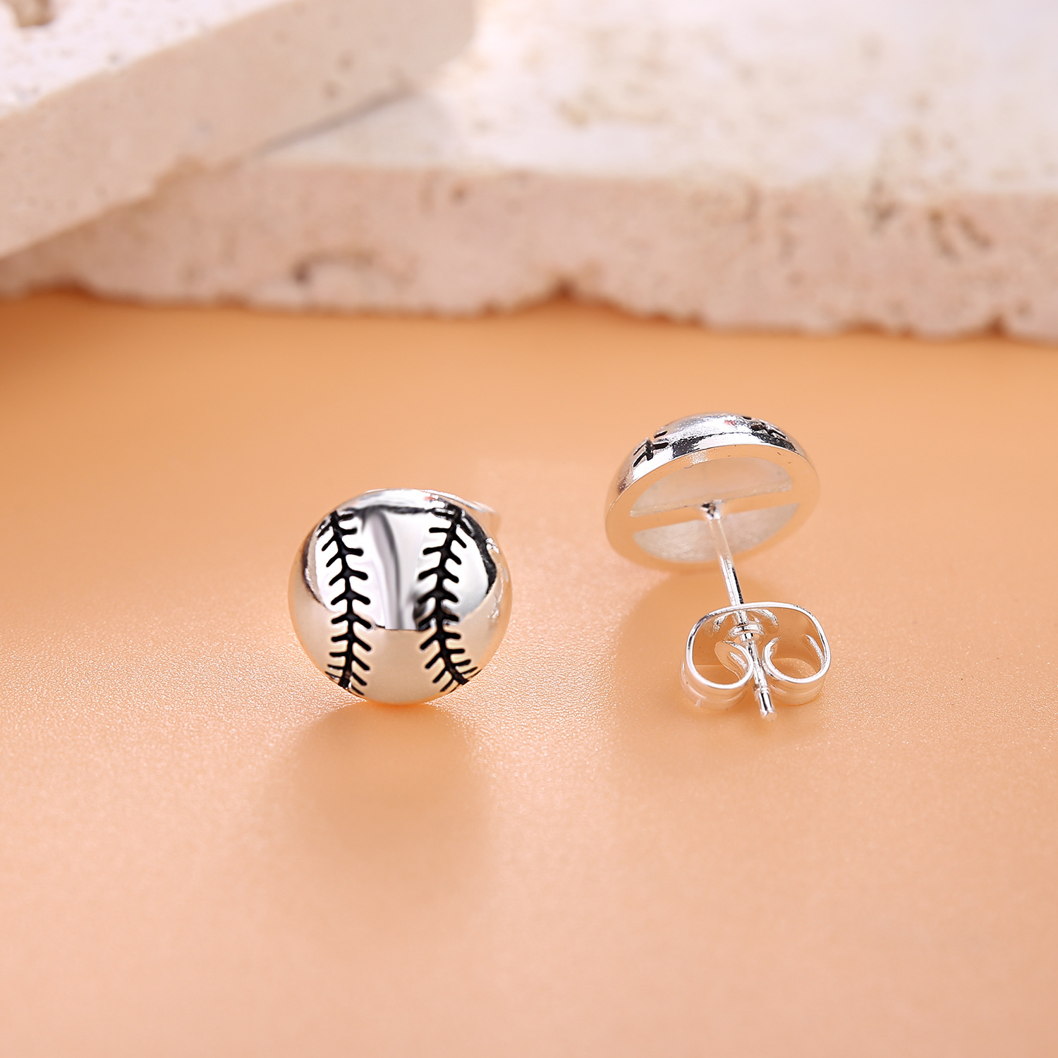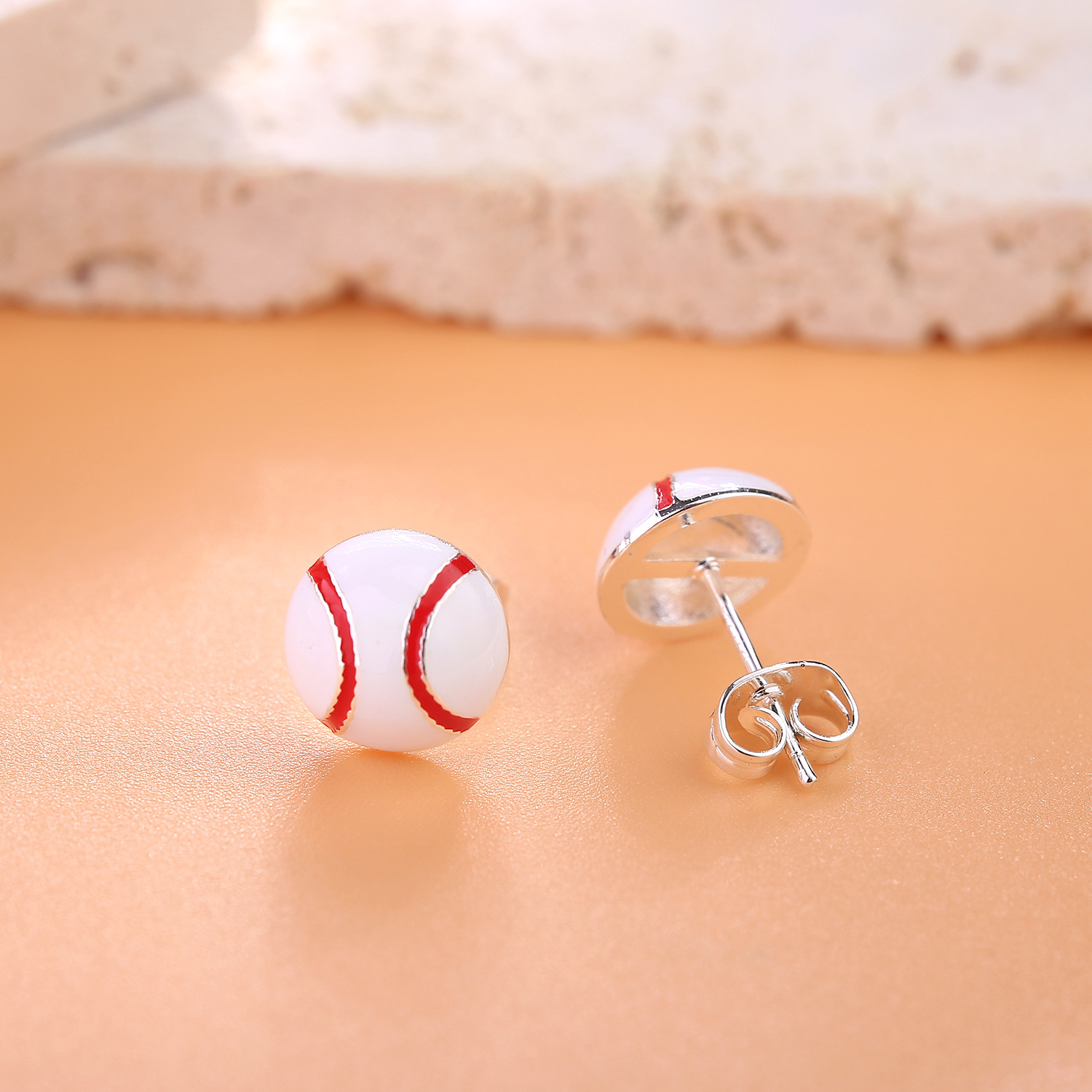 新型アマゾン卸売り純銀耳針バスケットボールイヤリング運動イヤリングサッカー銅耳釘バレーボール野球耳飾り