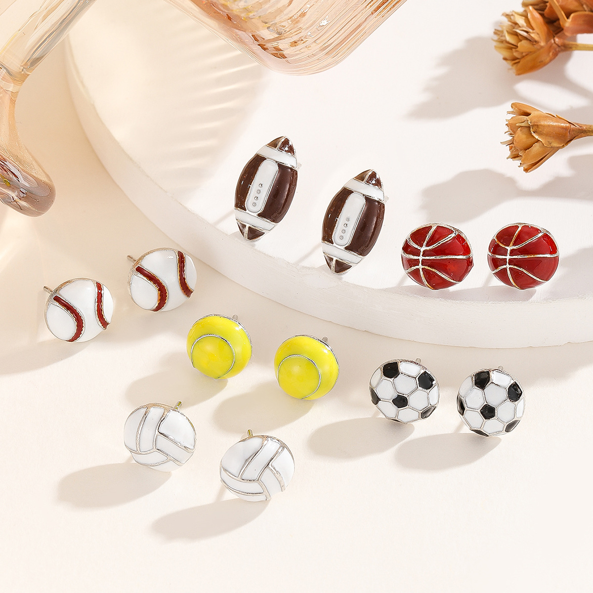 外国貿易クロスボーダー新型欧米スポーツ風ファッションイヤリングバスケットボールサッカーバレーボールピアスアクセサリー女性