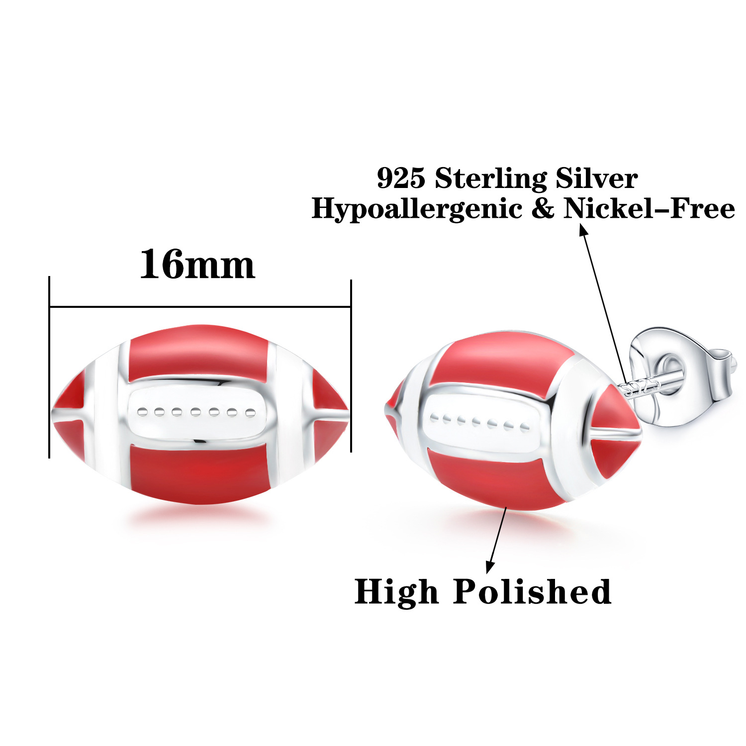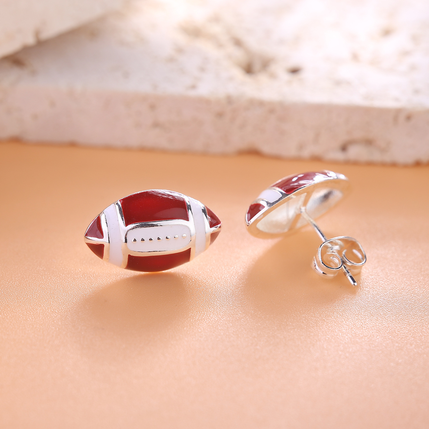 跨境爆款创意足球篮球橄榄球耳钉个性超级碗百搭热卖耳饰品
