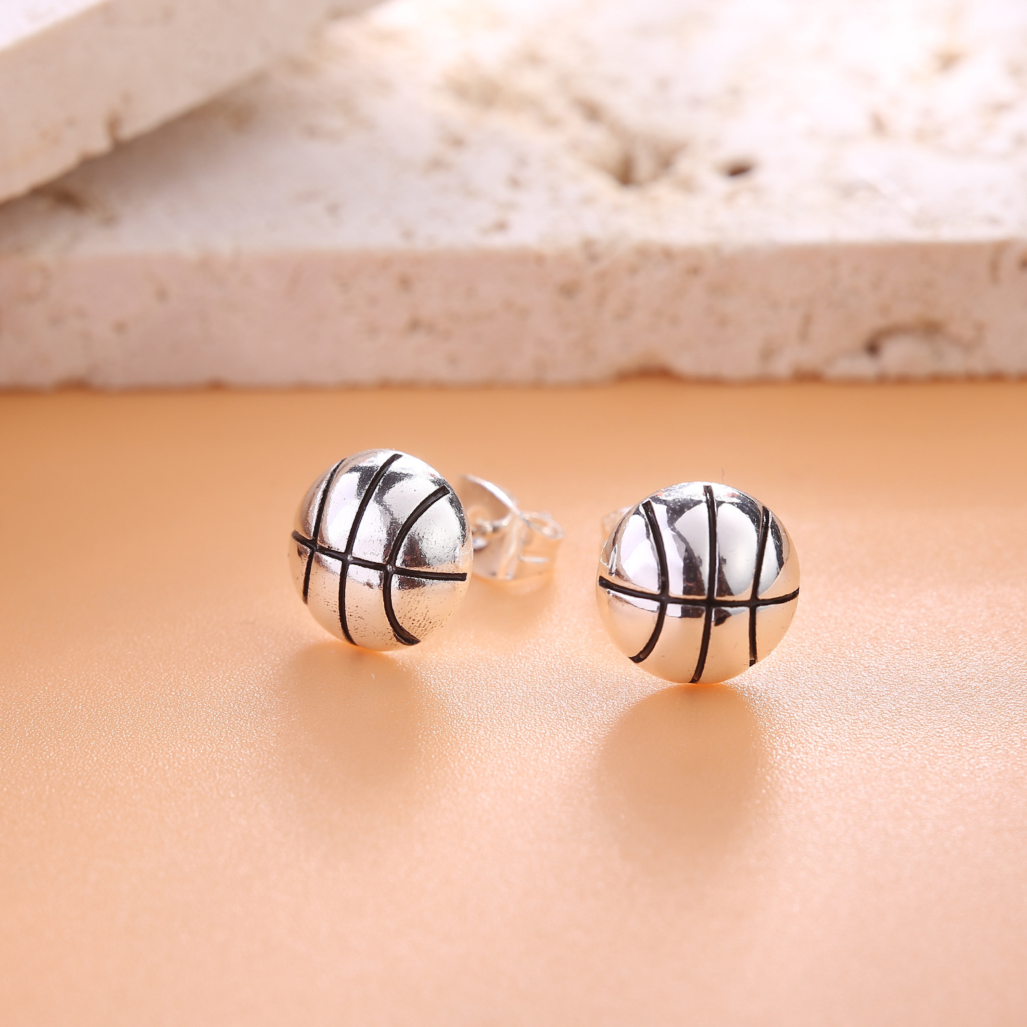 欧美跨境滴油迷你运动足球篮球半立体耳钉个性仿真足球耳饰女批发