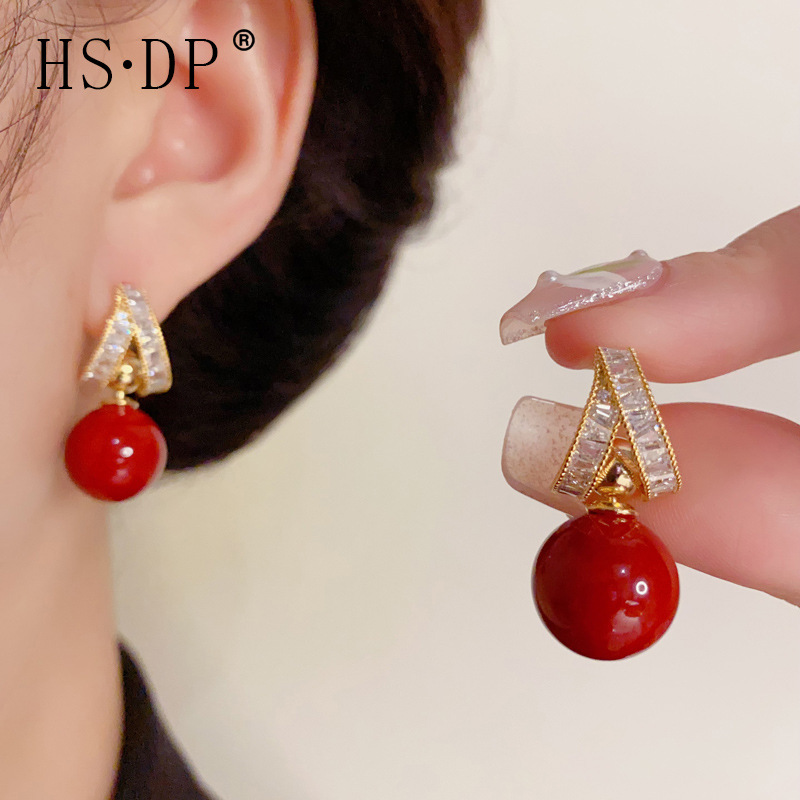 日韓の軽い豪華な高級感の甘い米の玉の愛の耳は女性のファッションの個性の甘いクールな大衆の設計感のイヤリングを掛けます。