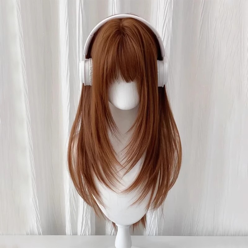 砂糖の音のかつらの冬の新型の女性の自然なリアルな前髪のオレンジの茶色の長いまっすぐな髪の丸い顔の自然な全体のカバー