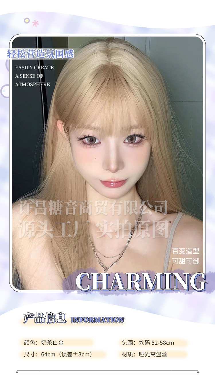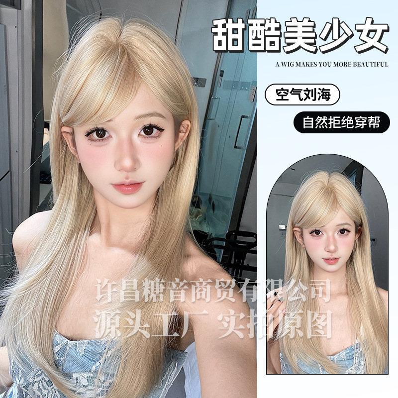 砂糖音かつら夏の新型ネット赤長直髪lolita自然甘いミルクティー金かつらjk全頭カバー