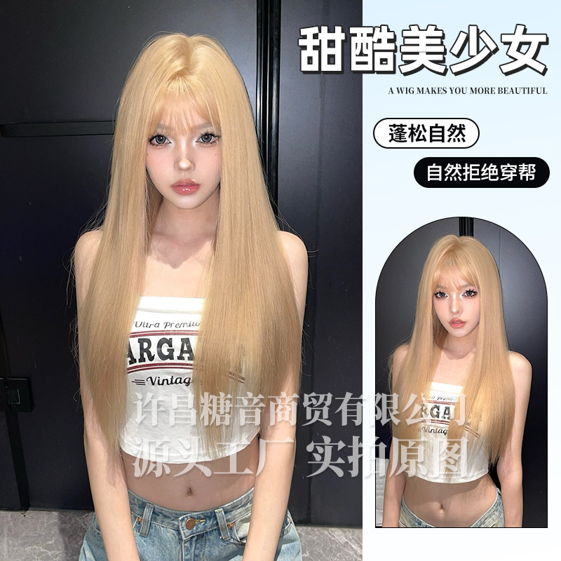 砂糖音かつら新型ネットレッド長直髪lolita自然甘いミルクティー金かつらjk全頭カバー