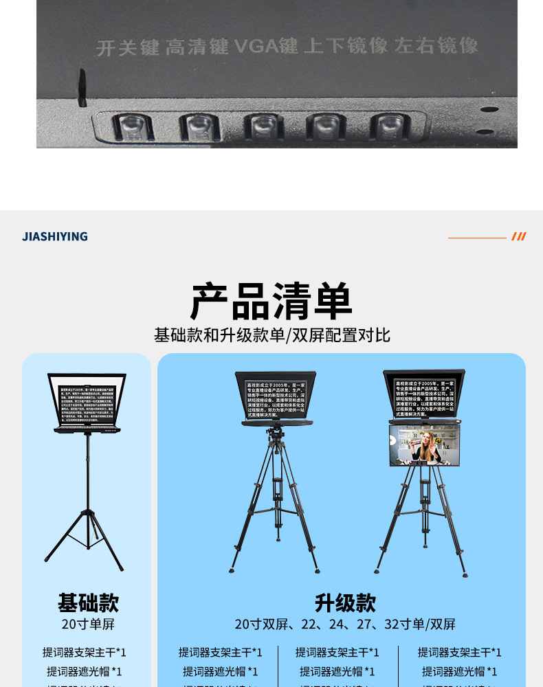 パッキングリスト 提語器本体 * 1提語器ディスプレイ * 1提語器三脚 * 1リモコン * 1接続線 * 1ドライバー * 1
