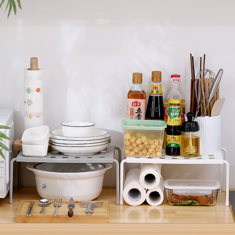 伸縮式厨房物置棚卸売り多層家庭用プラスチック穴なし携帯調味料二重厨房収納棚