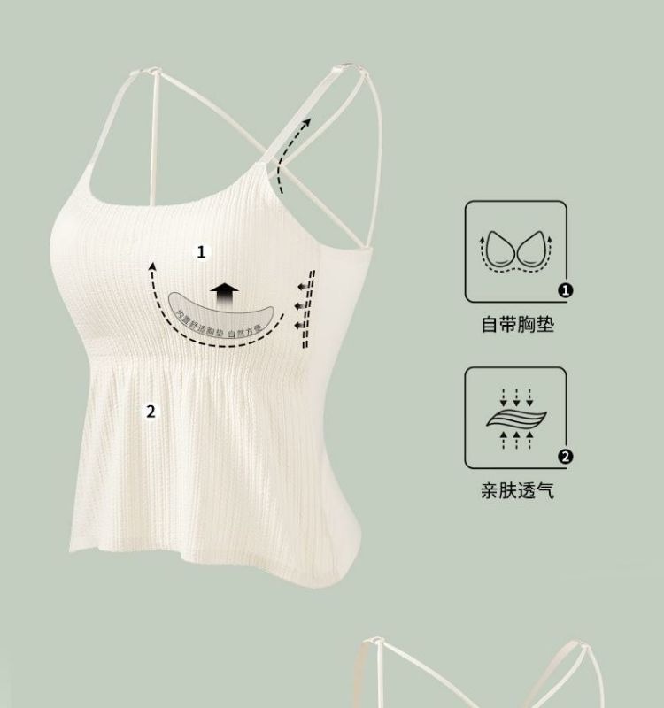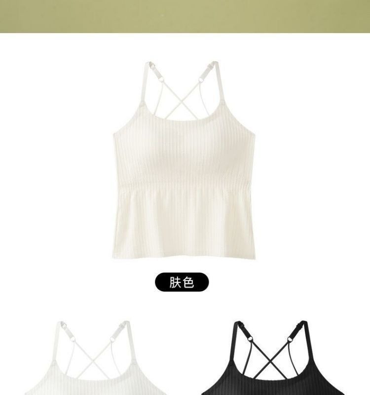 純綿の女性用インナーベスト、胸パッド付き、固定カップ、小胸を寄せ上げ、外でも着用可能、露出防止、キャミソール風